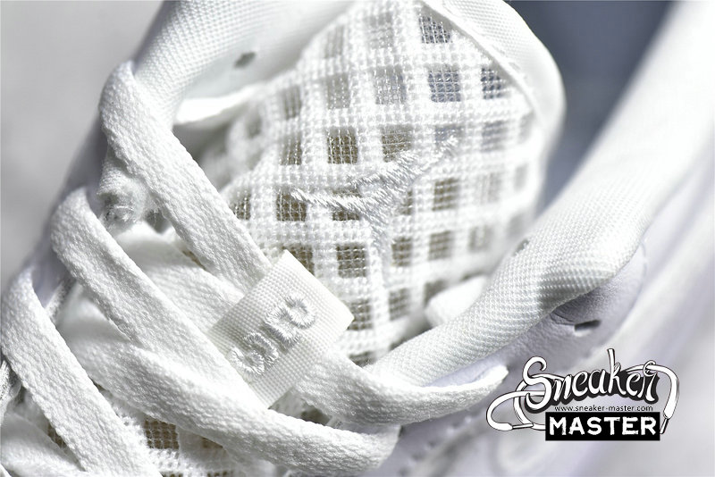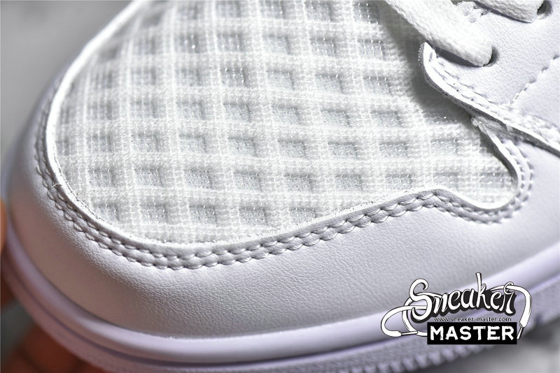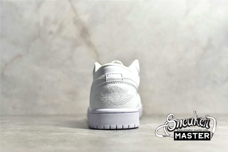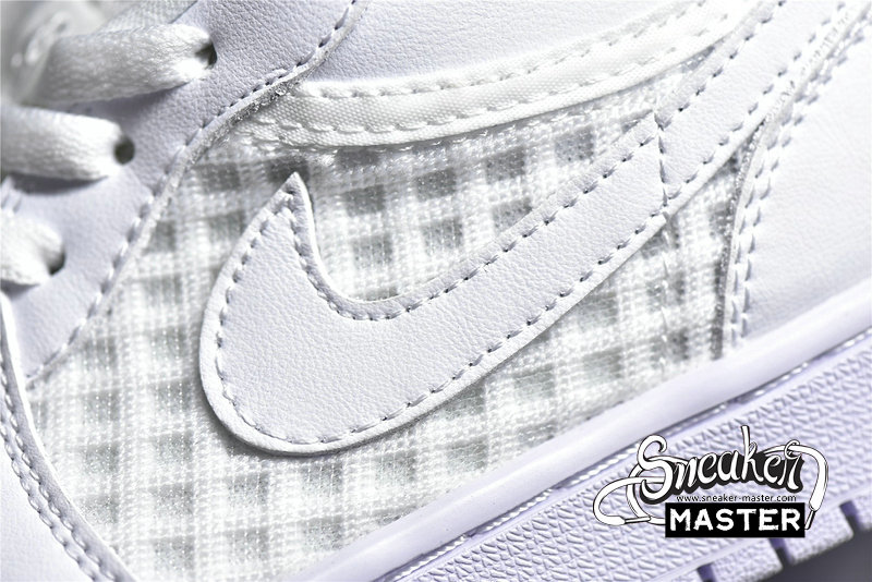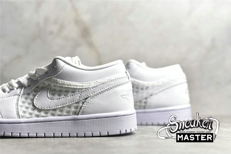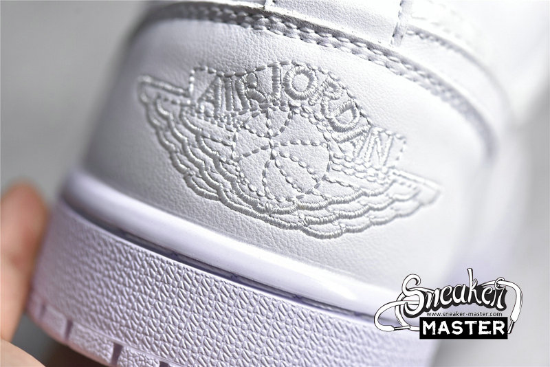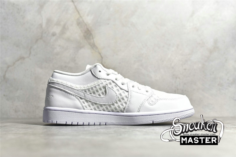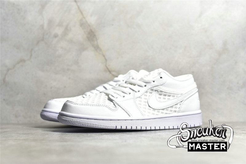 - This offering of the low-top Air Jordan 1 sports an all-White color blocking with matching tonal branding throughout. It features open-mesh on the side panels, toe box, and tongues paired with leather overlays. A solid White rubber sole completes the design.