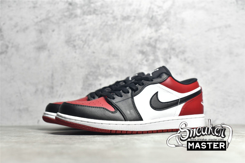 - NIKE AIR JORDAN 1 LOW BRED TOE WHITE/BLACK/UNIVERSITY RED 553558-612
