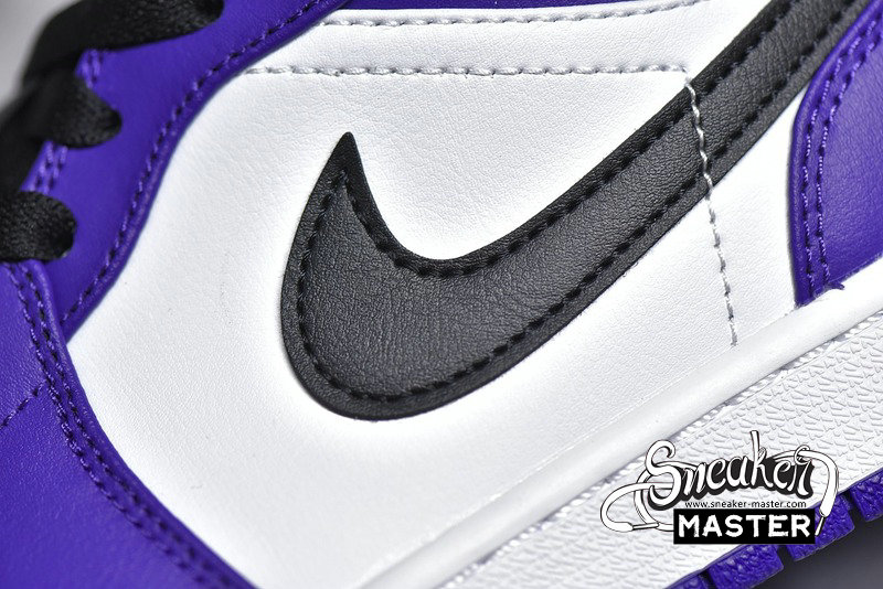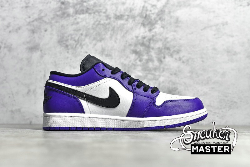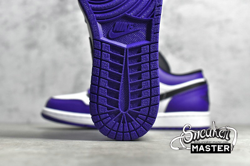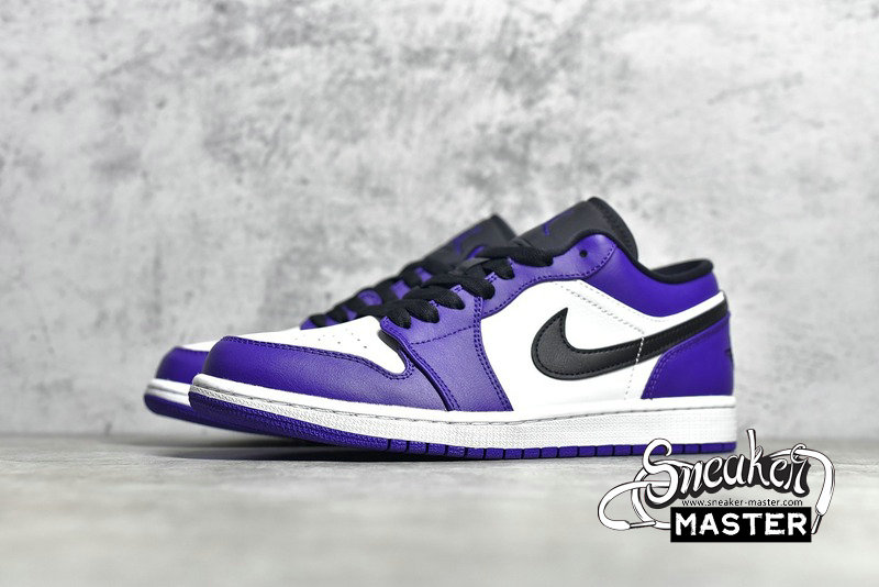 - This Air Jordan 1 Low comes dressed in a Court Purple, White and Black color combination. Featuring classic color blocking with White leather across the base while Purple lands on the overlays. Other details includes a White midsole and a Purple rubber outsole.