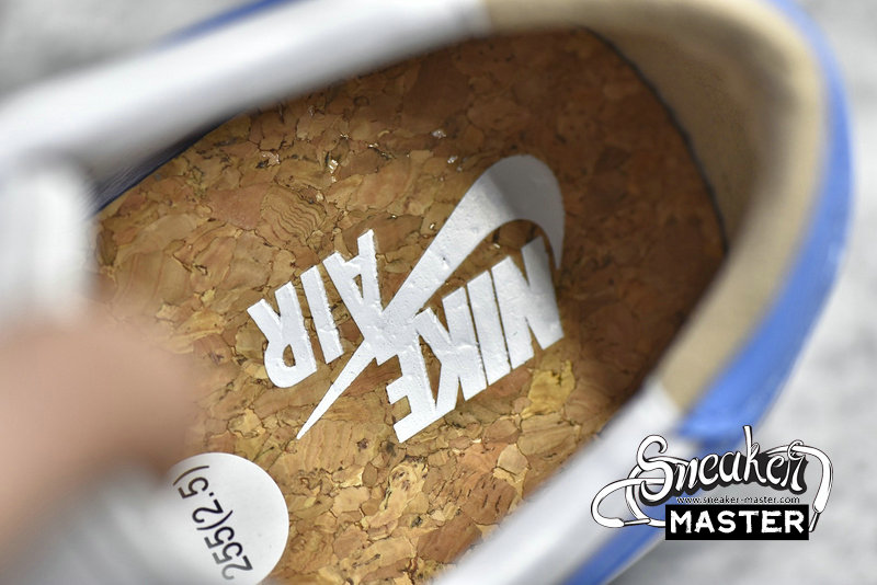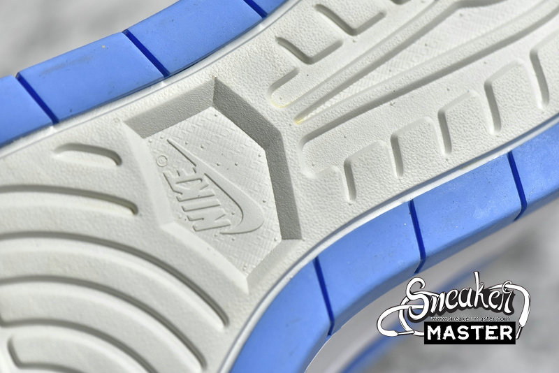 - This rendition of the Air Jordan 1 features a White leather base with University Blue overlays and Swooshes. A modified chunky platform sole in White atop a Blue rubber outsole with the outline of the “Wings” logo in the rear and cork insoles completes the design.