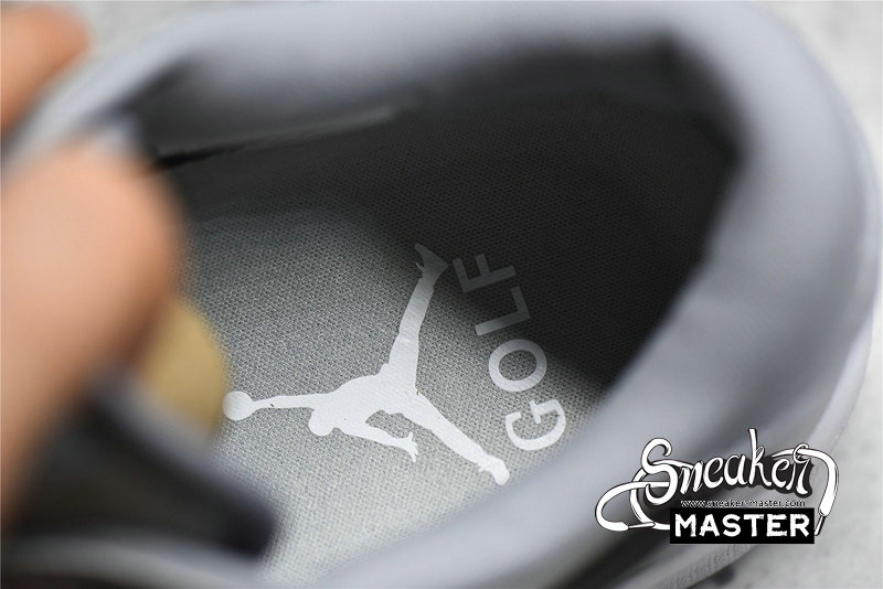 - The golf sneaker uses light grey leather on the base of the upper with Wolf Grey on the tongue and overlays throughout. The Swoosh is seen in black, which is giving of Air Jordan 1 “Dior” vibes. Jordan Golf branding on the tongue tag, insole, and the Wings logo heeltab as well. White is used on the midsole and the icy translucent outsole features rubber teeth for traction on the golf course.
