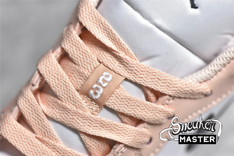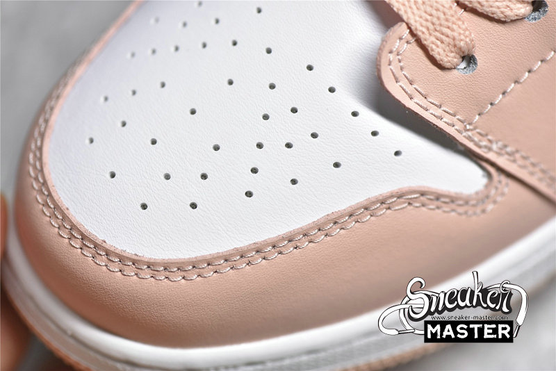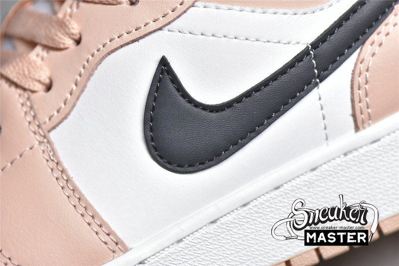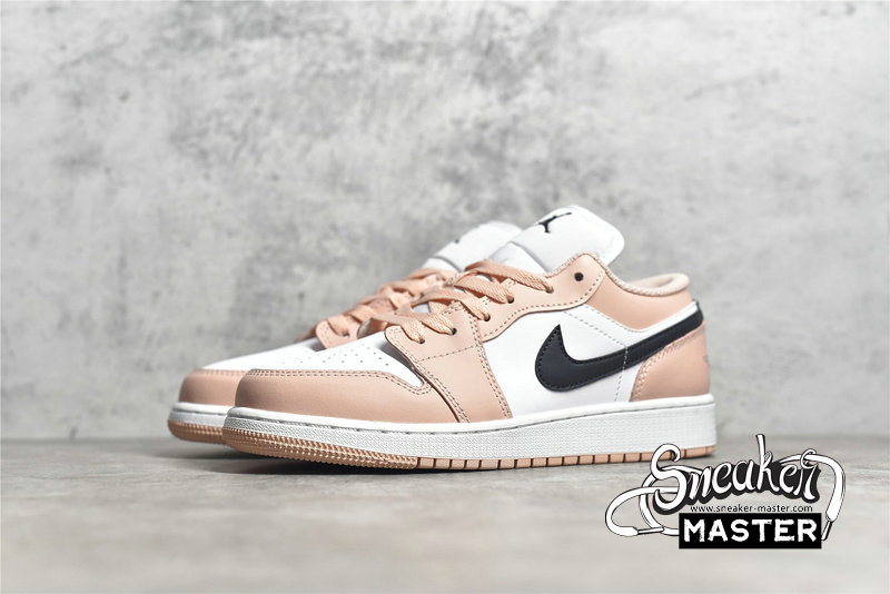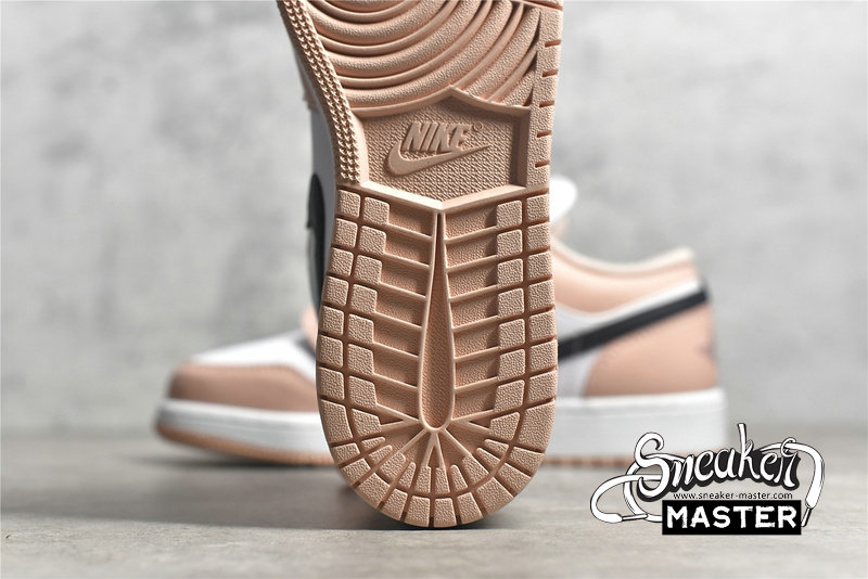 - This offering of the low-top Air Jordan 1 features a White leather upper with Light Arctic Pink overlays, laces, and rubber outsole. Black leather Swooshes, Jumpman tongues, and Wings heel logo atop a White midsole completes the design.