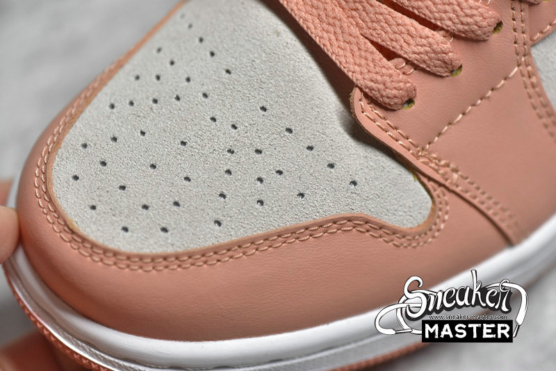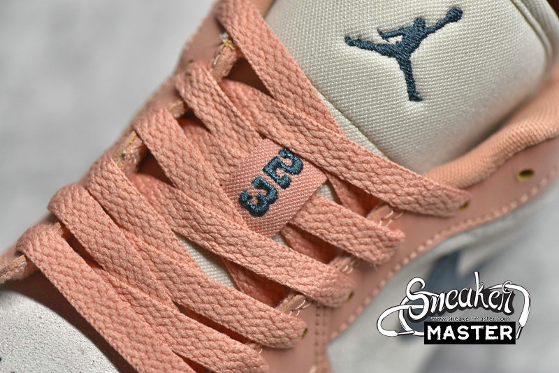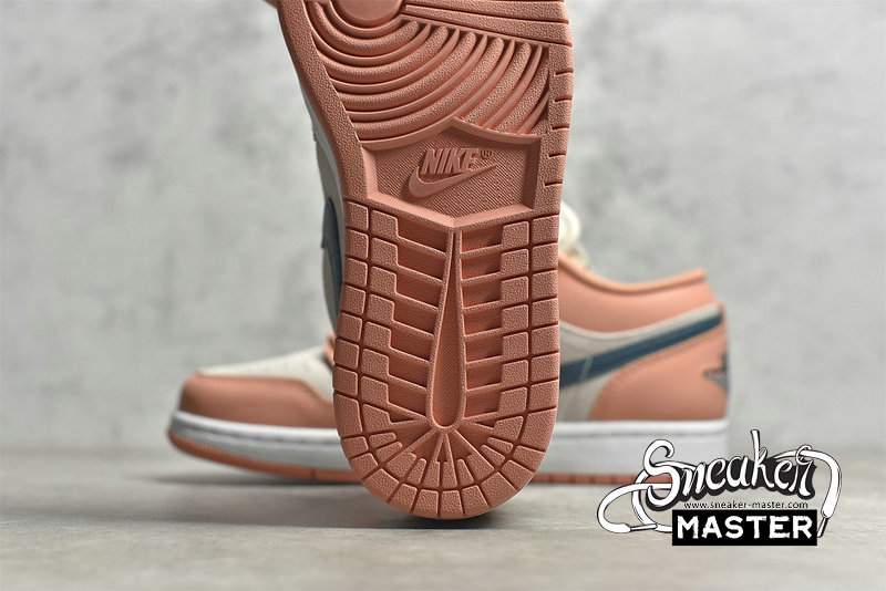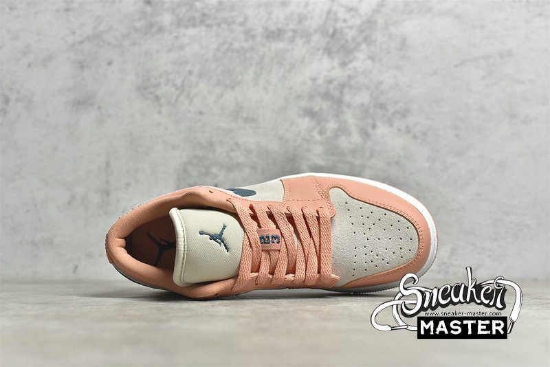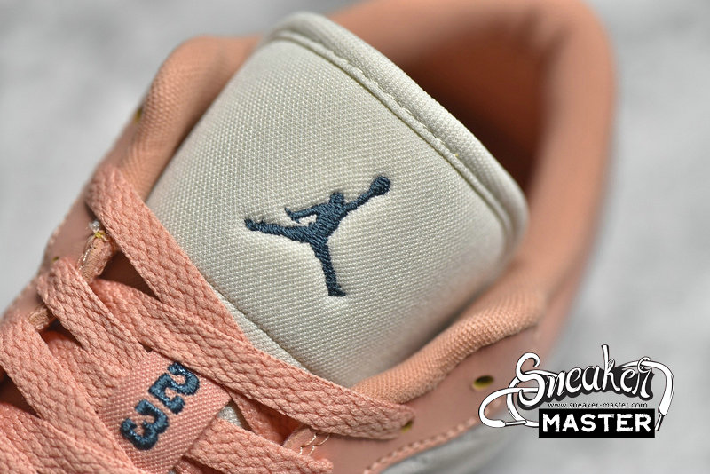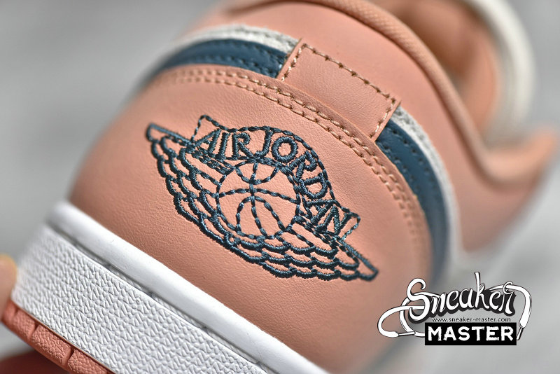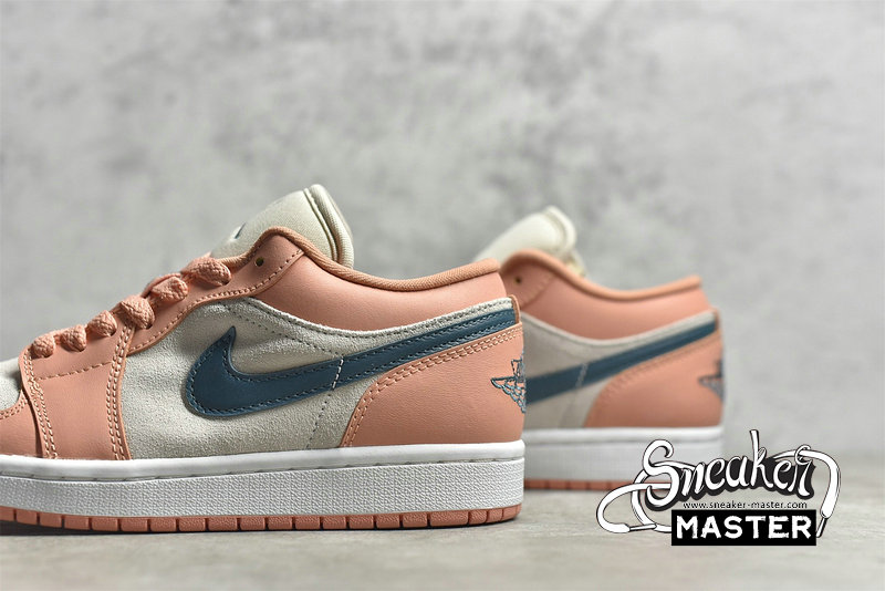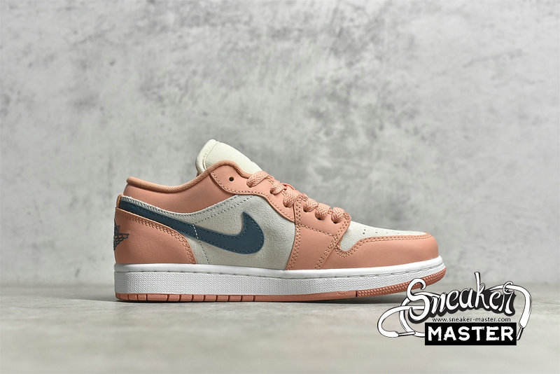 - This offering of the low-top Air Jordan 1 features a neutral suede base with Pink leather overlays paired with Teal Green Swooshes and branding. A mesh tongue atop a White midsole and Pink rubber outsole completes the design.