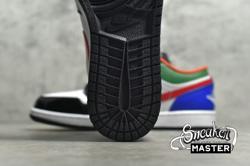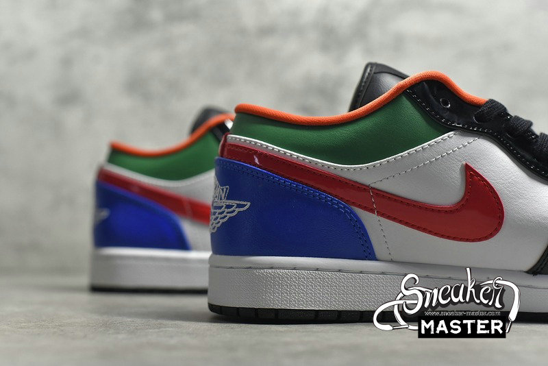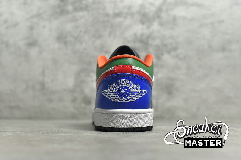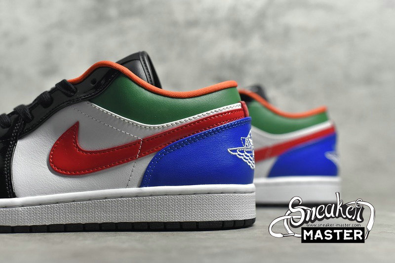 - The Multi-Color is a new addition to the Nike Air Jordan 1 Low lineup. While the base is constructed with white mesh, leather overlays in black, blue and green accentuate the upper. Red Swooshes and an orange sockliner are also added to the mix. A black tongue and rubber sole finish the design.