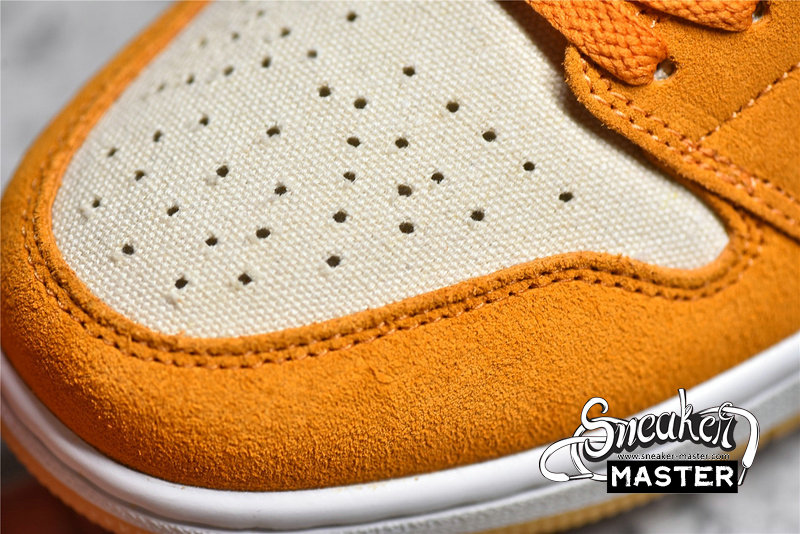 - This offering of the low-top Air Jordan 1 comes constructed with a canvas base paired with suede overlays and Swoosh logos. Embroidered branded tongues and heels atop a White midsole and Gum rubber outsole completes the design.