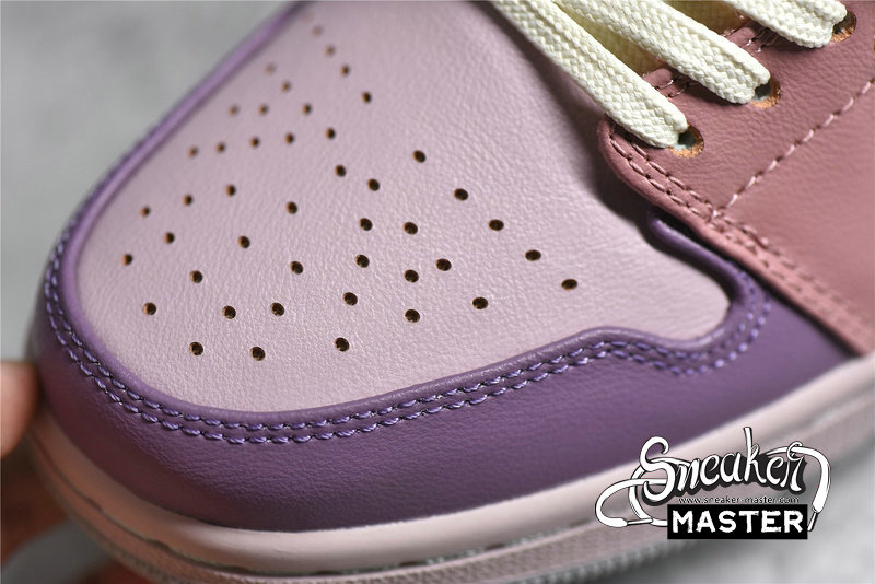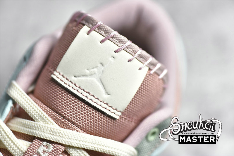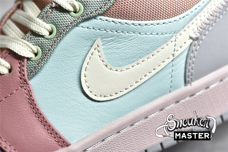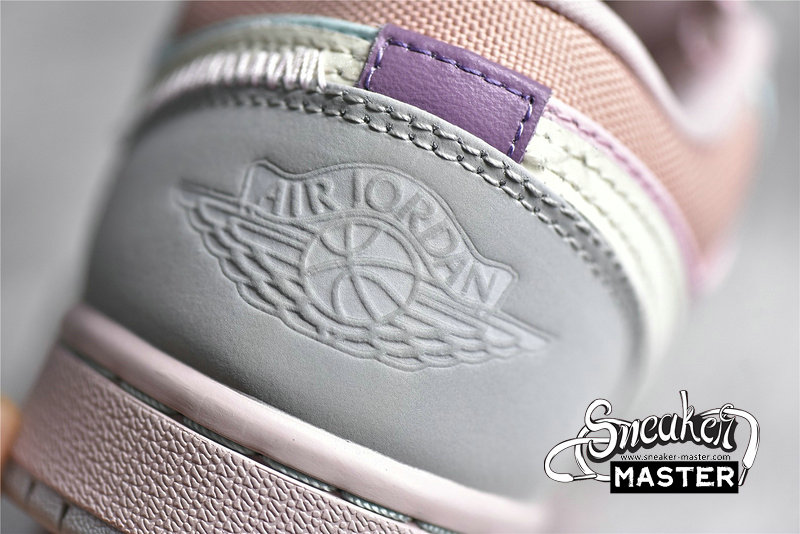 - This offering of the Air Jordan 1 Low comes constructed in a mix of materials featuring a canvas and leather build fully dressed in various pastel hues. Other details include exposed stitching on the lateral rear and tongue while having Sail laces and Swooshes completed with a Grey rubber outsole.