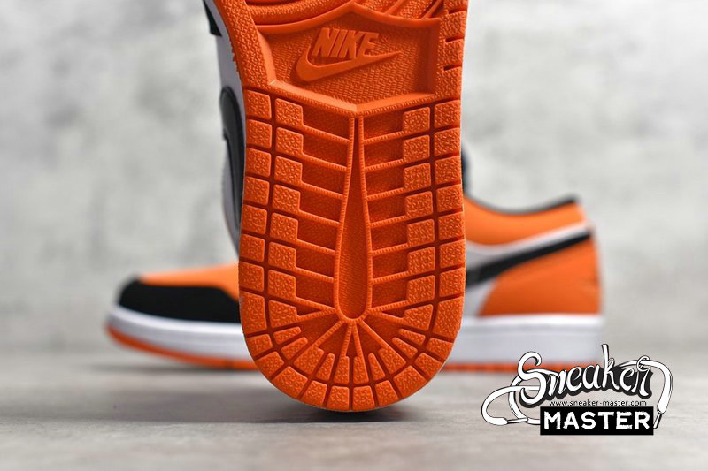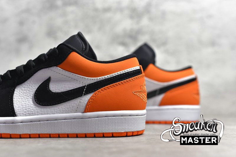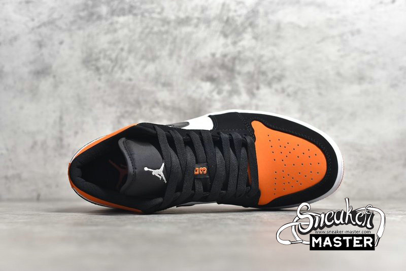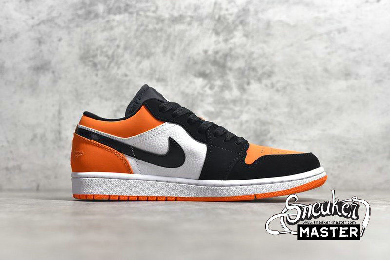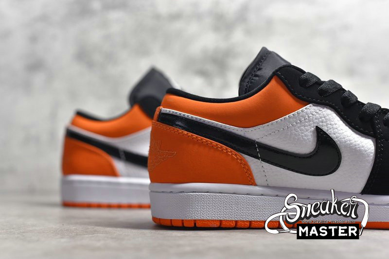 - The Air Jordan 1 Low 'Shattered Backboard' delivers a chopped down version of the massively popular colorway of the sneaker that started it all. Like its predecessor, this low-top edition features a blend of white, black and orange on the upper, built with leather and nubuck instead of the all-leather construction of the high-top. Branding elements include a Jumpman on the tongue and the Wings logo on the heel.