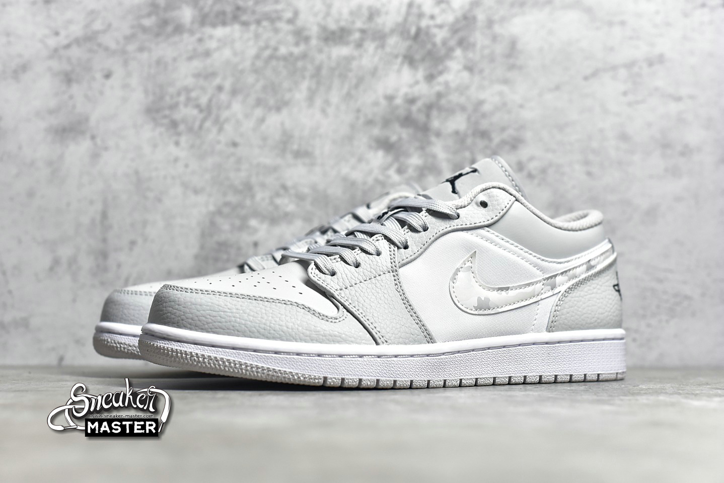 NIKE AIR JORDAN 1 LOW WHITE CAMO SOFT GREY CAMO SWOOSHES WHITE/BLACK-NEUTRAL GREY DC9036-100
