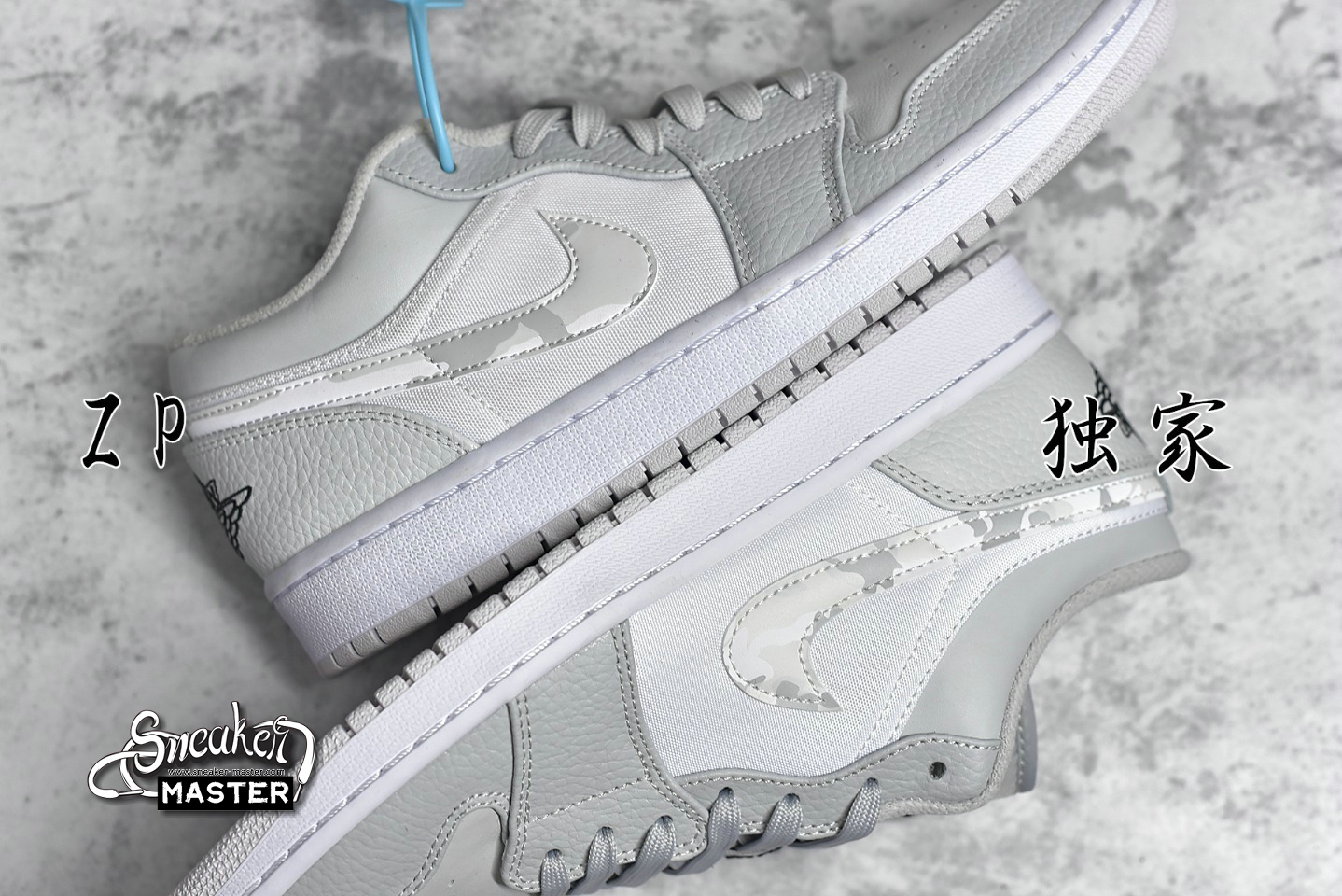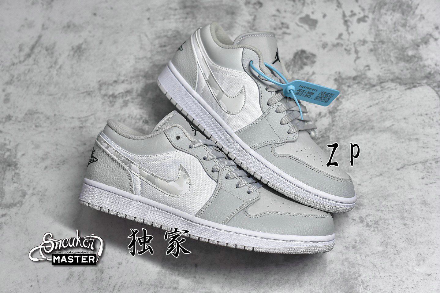 NIKE AIR JORDAN 1 LOW WHITE CAMO SOFT GREY CAMO SWOOSHES WHITE/BLACK-NEUTRAL GREY DC9036-100Item NO.: 0854002020111908