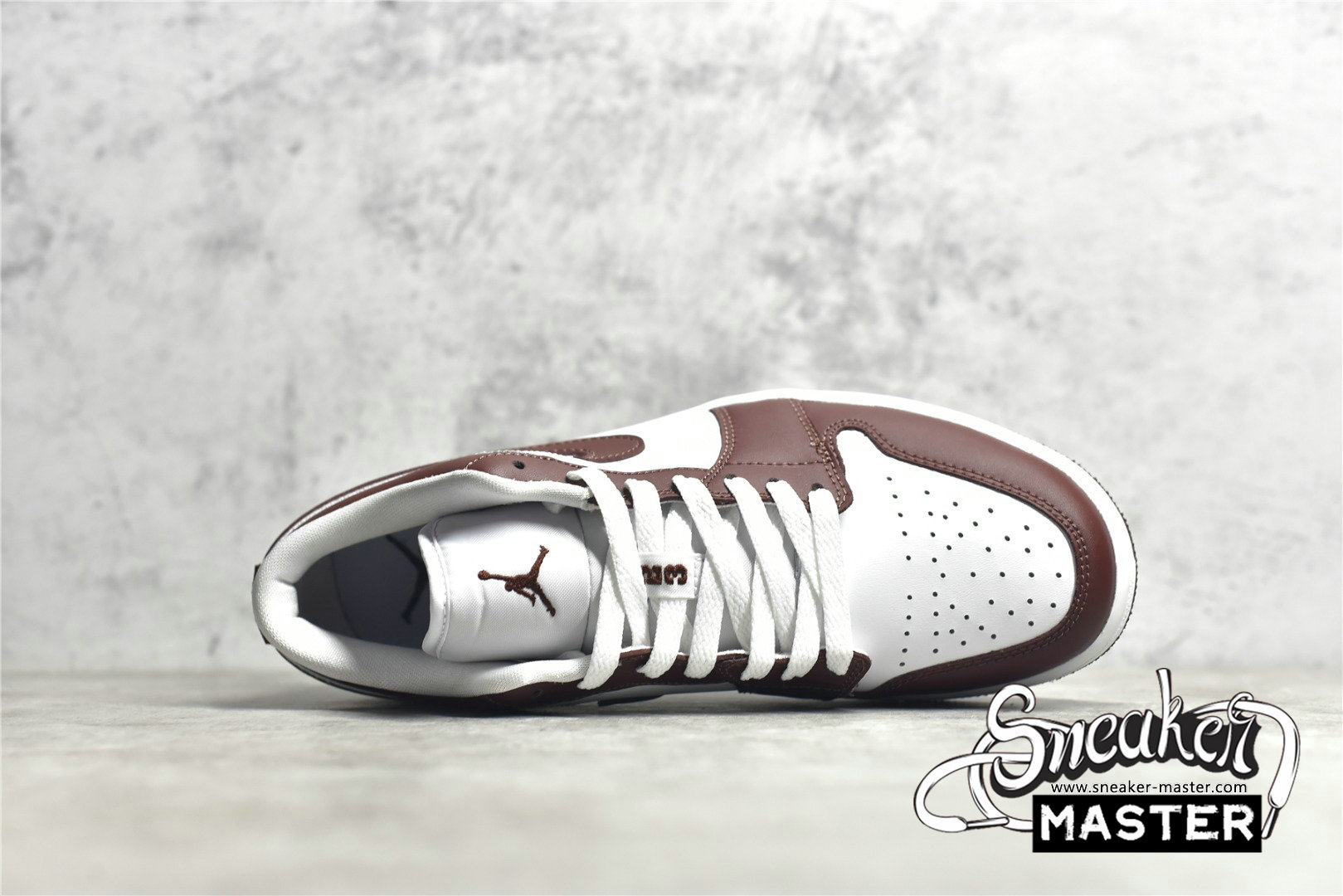 - Adding an elemental two-tone color scheme to the iconic model is the women's Air Jordan 1 Low 'Bronze Eclipse.' This low-top has a leather upper that pairs a crisp white base with contrasting burgundy overlays on the forefoot, collar, and heel. '23' lace keepers are color-matched with the Jumpman icon embroidered on the white nylon tongue. The classic Wings logo is on the back heel, and a rubber cupsole with a Nike Air unit is in the heel.