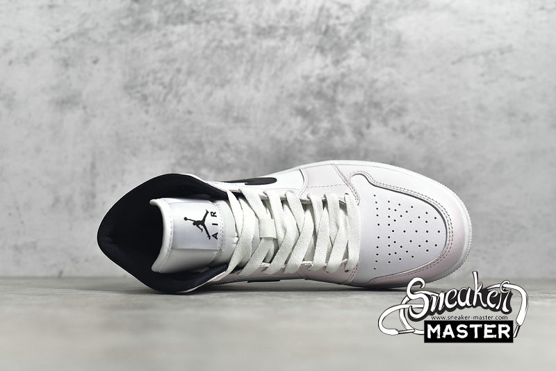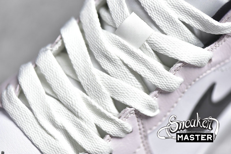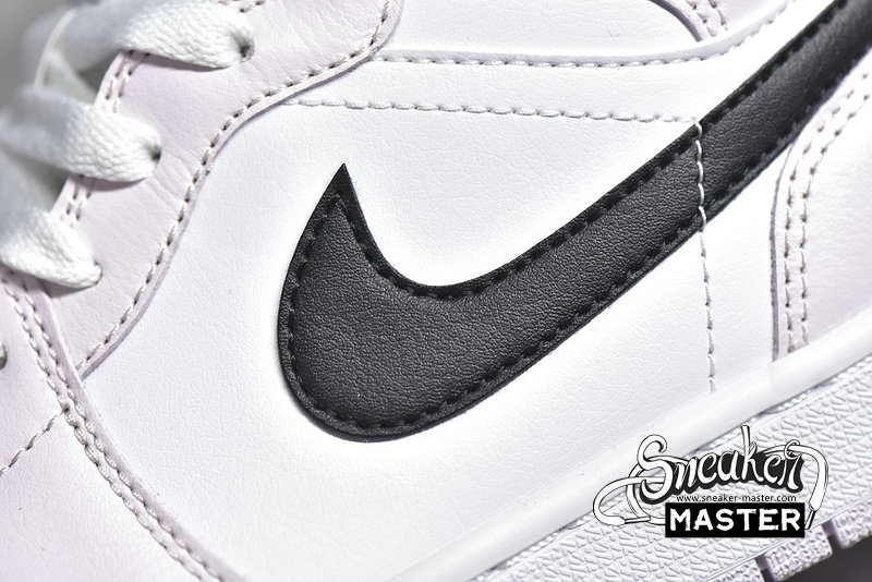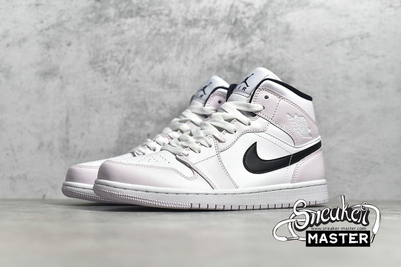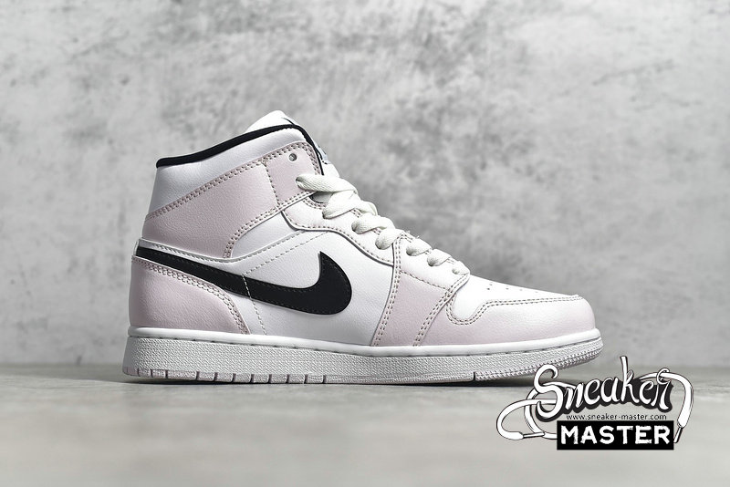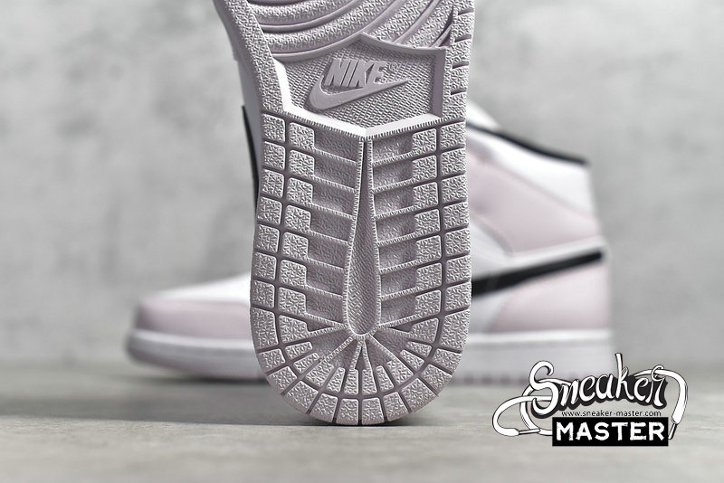 - This edition of the mid-top Air Jordan 1 features a White leather base with Soft Pink overlays and matching rubber outsoles. Black leather Swoosh logos on the sides atop a White midsole completes the design.
