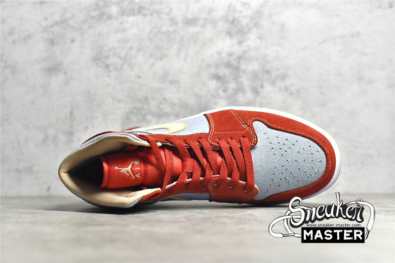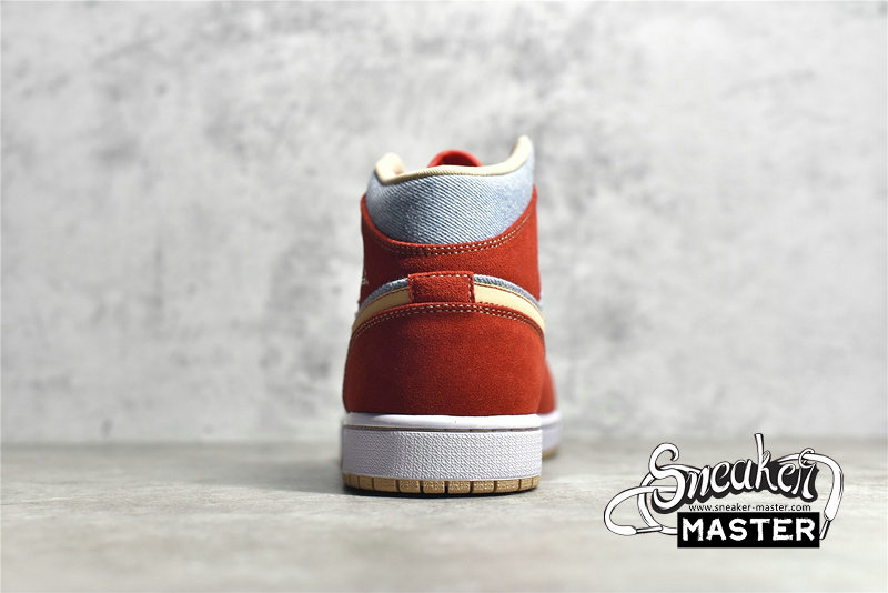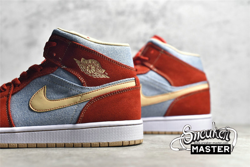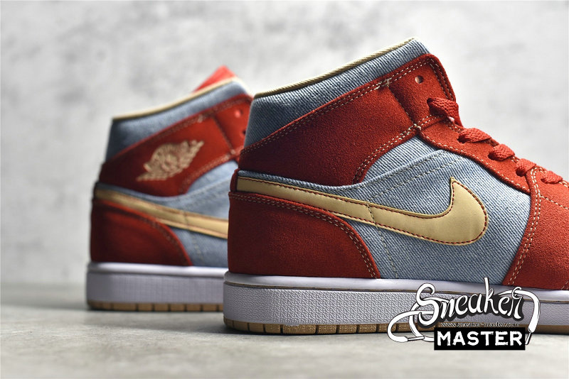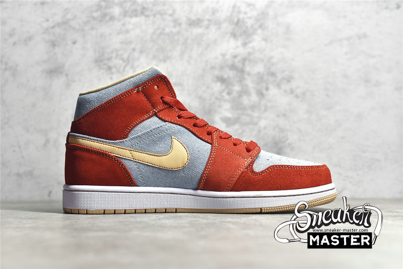 - NIKE AIR JORDAN 1 MID DENIM RED CINNABAR/HEMP/WHITE DM4352-600