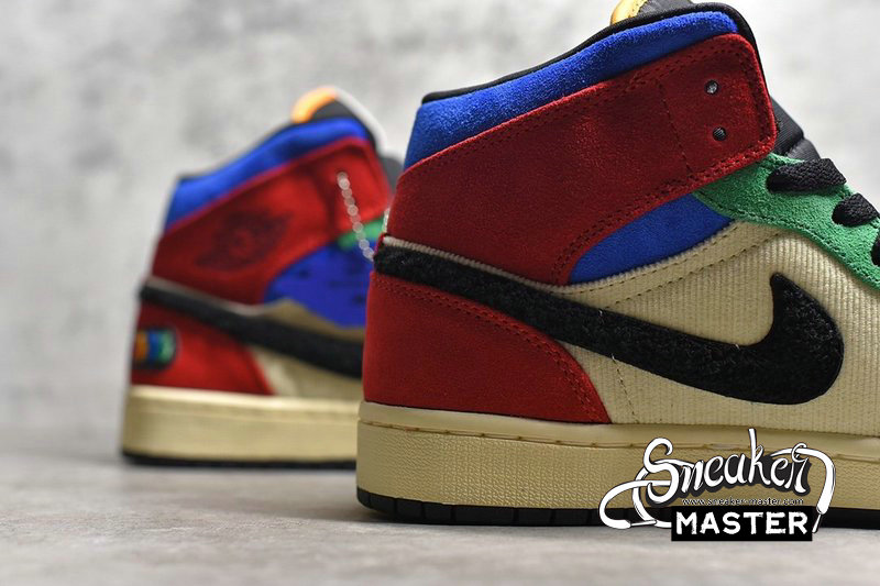 NIKE AIR JORDAN 1 MID FEARLESS X BLUE THE GREAT MUSLIN/VARSITY RED/ROYAL/TAXI/BLACK CU2805-100