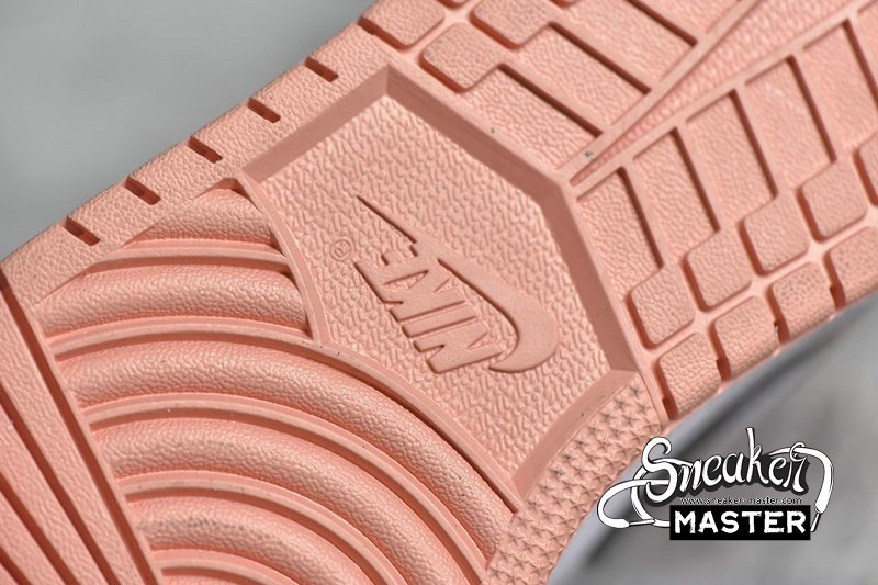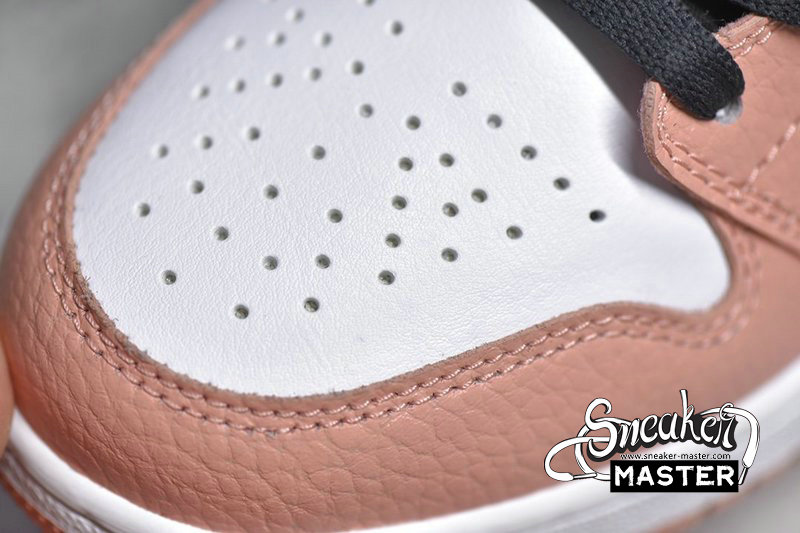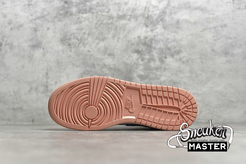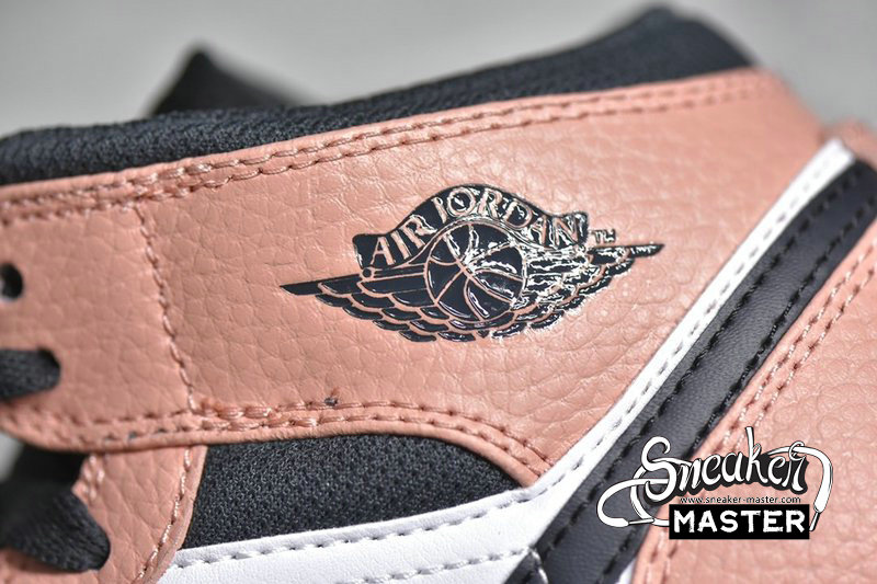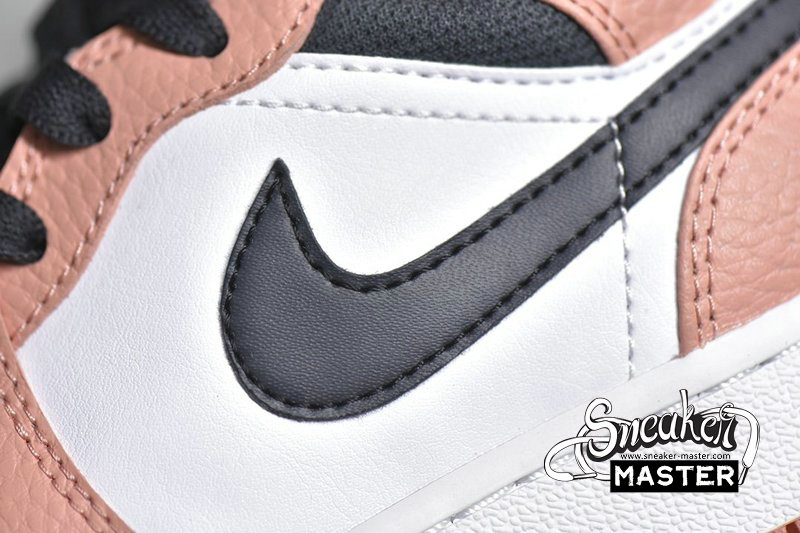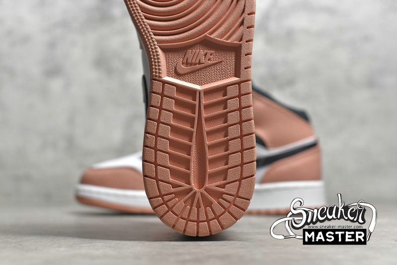 - This mid-top Air Jordan 1 features White smooth leather on the sides and toe with Pink tumbled leather overlays. Dark Smoke Grey leather Swooshes, nylon tongues and mesh collar atop a White midsole and Pink rubber outsole completes the design.