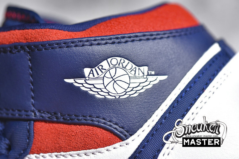 - Featuring the traditional USA theme, this Air Jordan 1 Mid comes dressed in White, Navy and Red. Utilizing White leather across the upper while Navy lands on the overlays. Adding a premium touch is Gold on the Swoosh and Wings logo while Red is placed on the ankle, tongue and rubber outsole to complete the look.