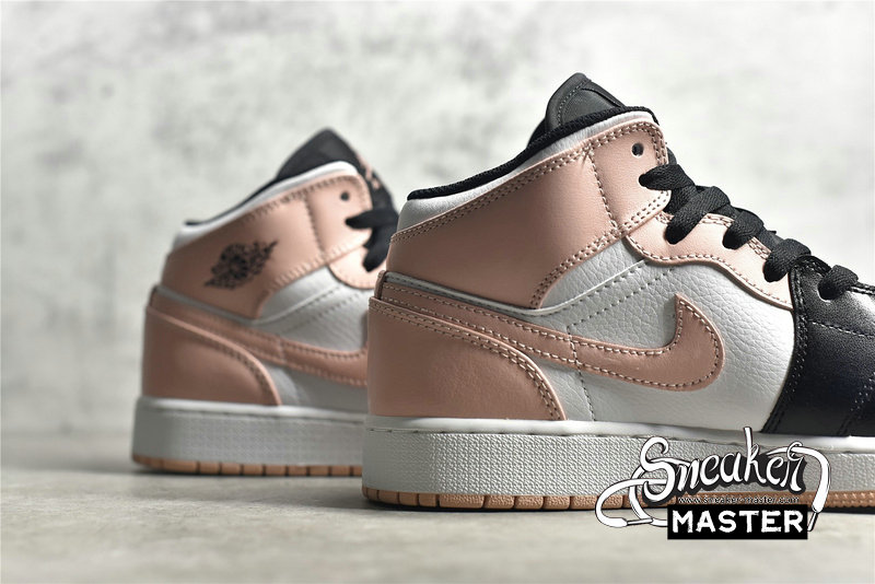 - The Air Jordan 1 Mid GS 'Crimson Tint' brings a contrasting look to grade-school sizes. Built with leather, the shoe's upper appears in white, contrasted by black on the forefoot and accented by Crimson Tint on the heel, eyestay and Swoosh branding. Underfoot, a white midsole houses Air for cushioning, giving way to more Crimson Tint on the concentric rubber outsole, which offers traction.