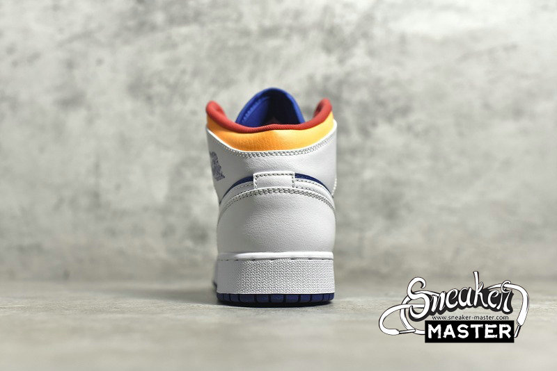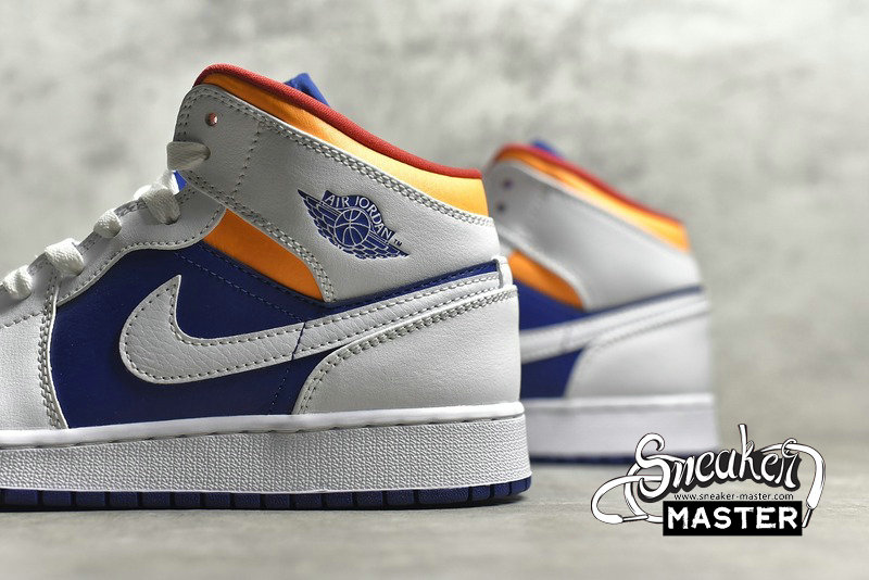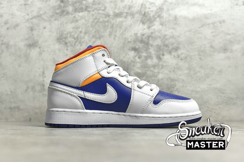 - Product Name: NIKE AIR JORDAN 1 MID GS WHITE/LASER ORANGE/DEEP ROYAL BLUE 554725-131