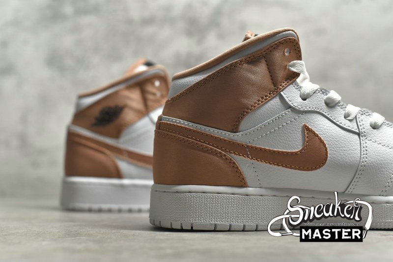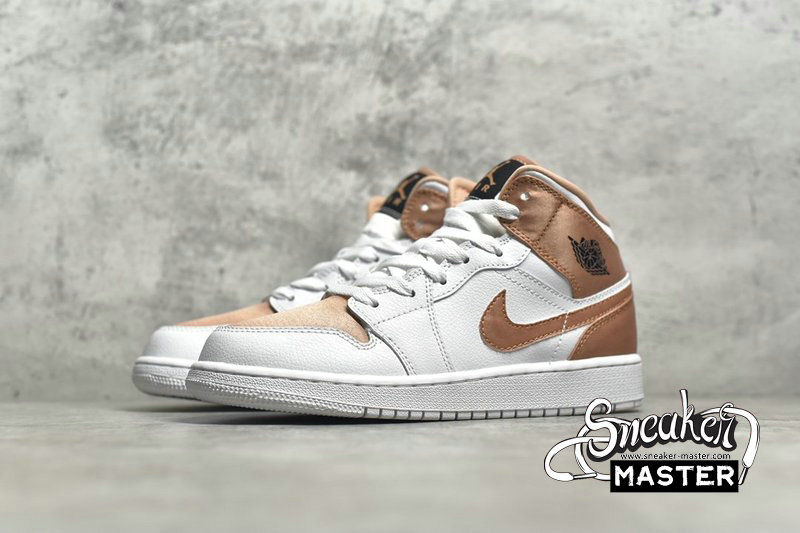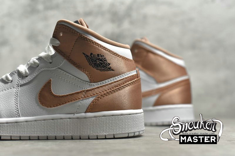 - NIKE AIR JORDAN 1 MID GS WHITE/ROSE GOLD-BLACK 555112-190