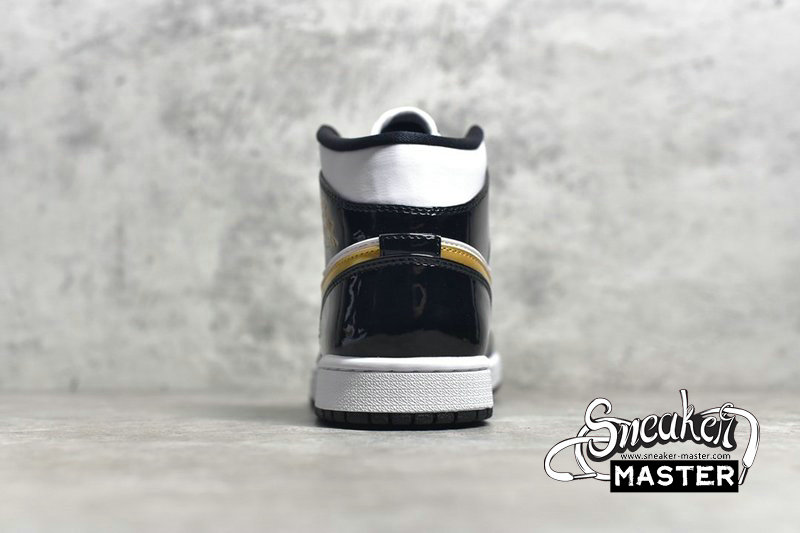 NIKE AIR JORDAN 1 MID PATENT BLACK/WHITE-METALLIC GOLD 852542-007