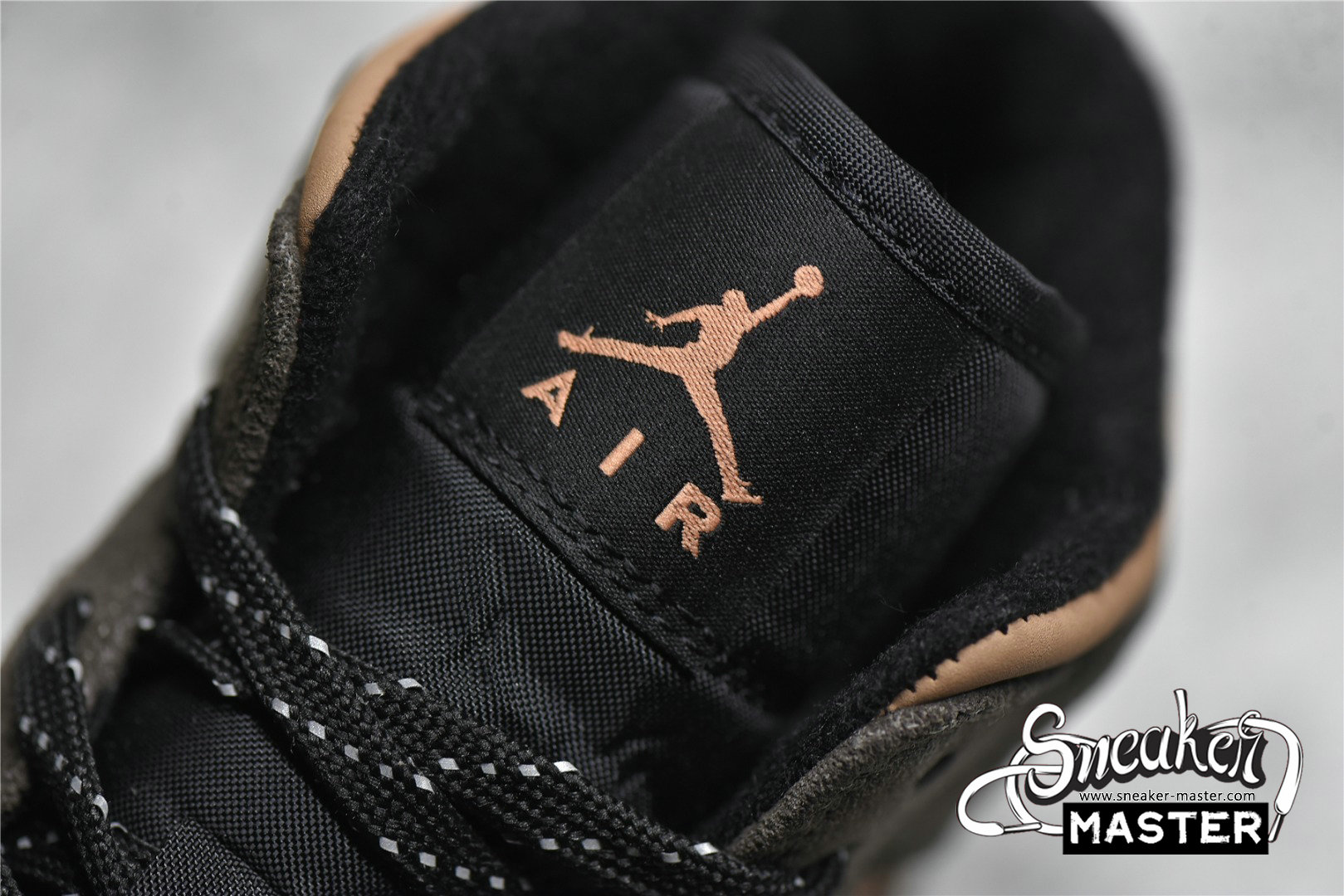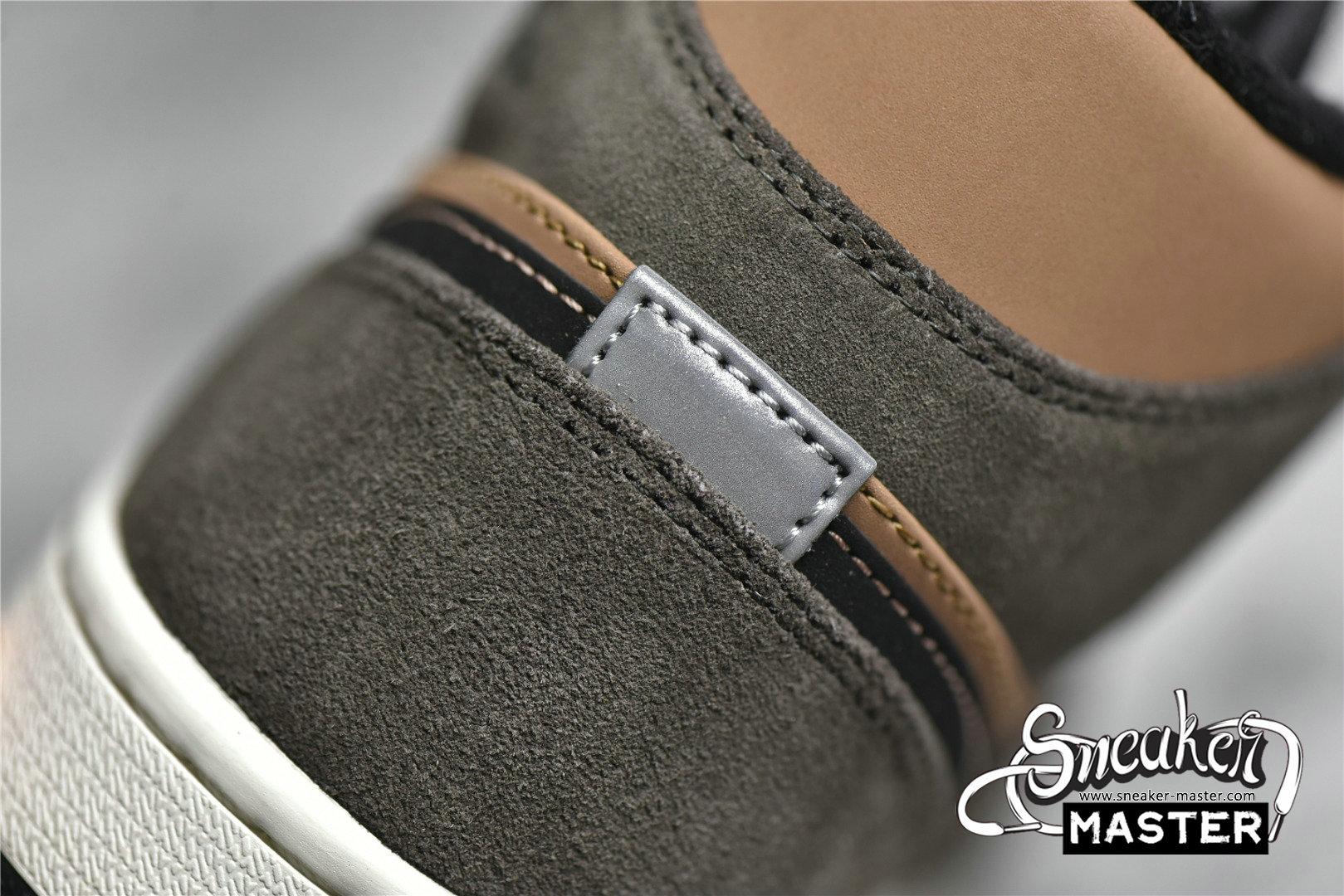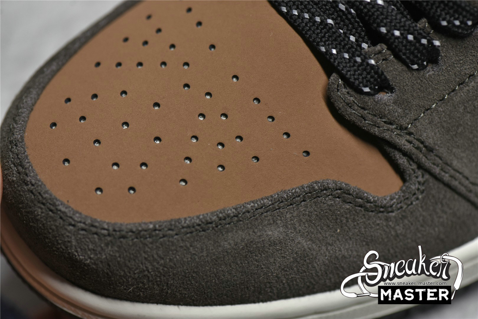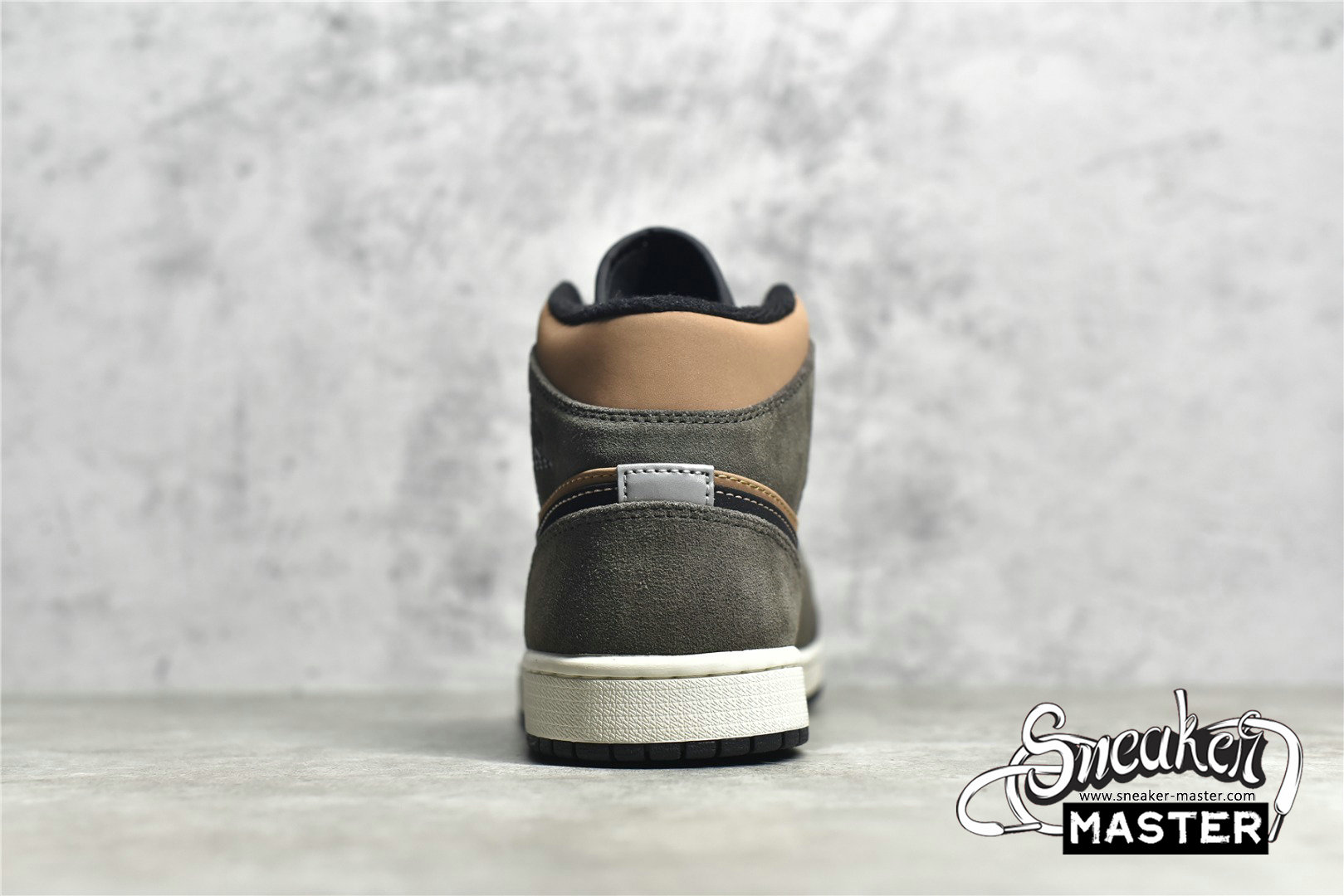 - This mid-top Air Jordan 1 comes replaces its usual leather build for full suede materials. Its entire upper sports a mix of dark and light Brown tones with Black Swooshes, plush sockliner, nylon tongues and matching rubber outsole. Trail-styled speckled laces with 3M reflective detailing in the rear atop a Sail midsole completes the design.