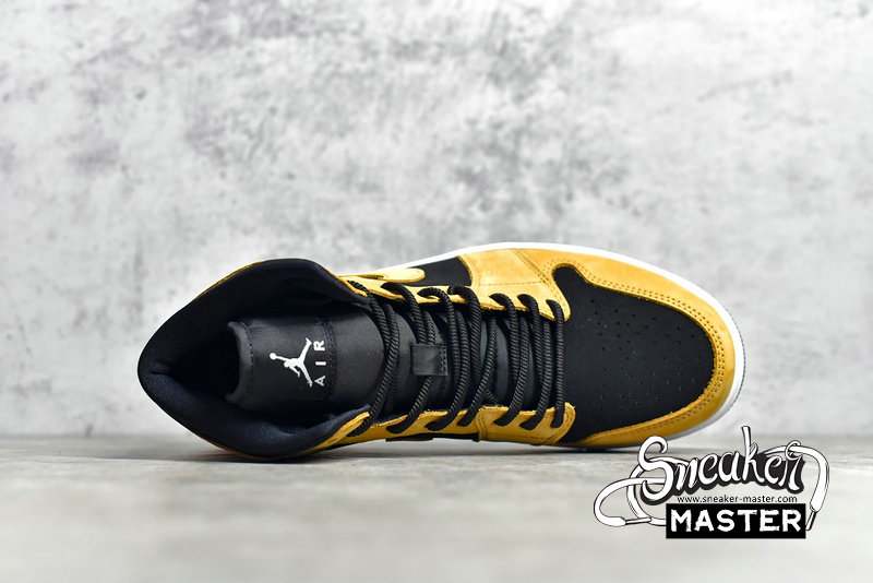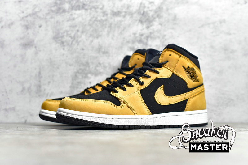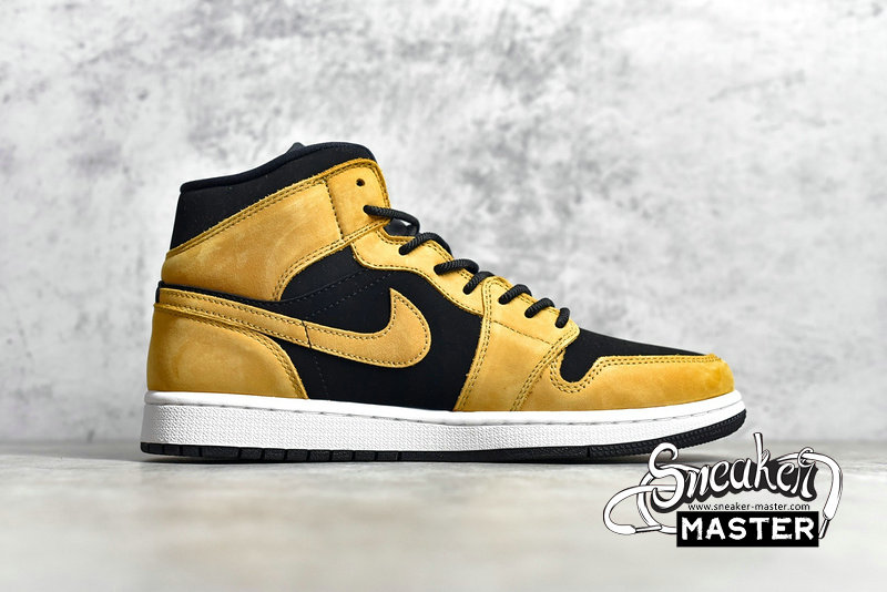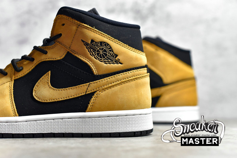 - Looking closer this Air Jordan 1 Mid comes with Black nubuck on the base, Black nylon on the tongue while Wheat suede lands on the overlays. In addition we have White on the Jumpman branding on the tongue and insoles while the same shade is applied to the midsole. Finishing the look is Black on the rubber outsole.