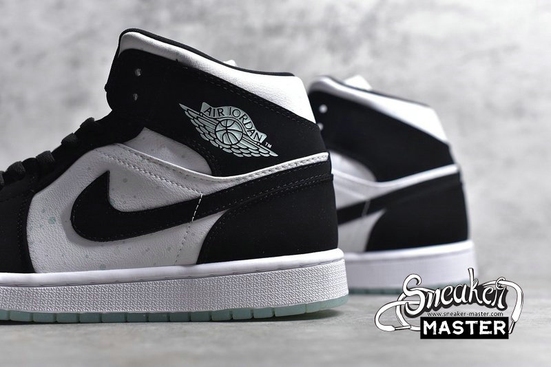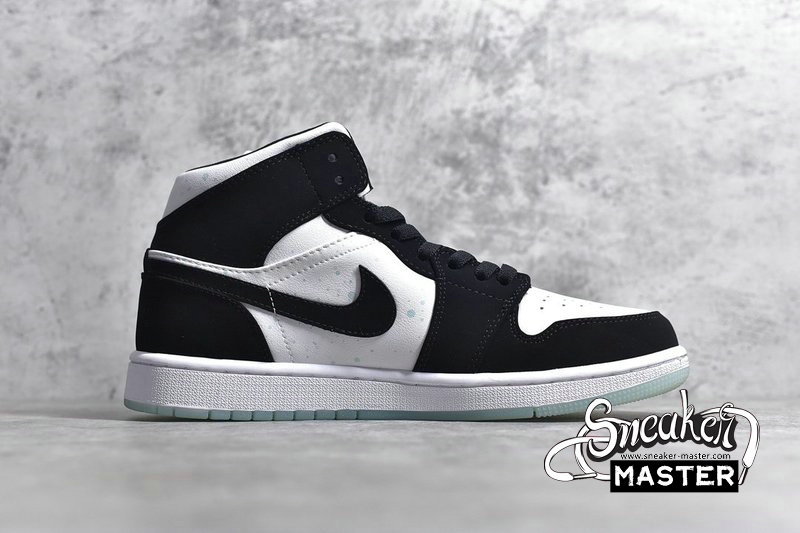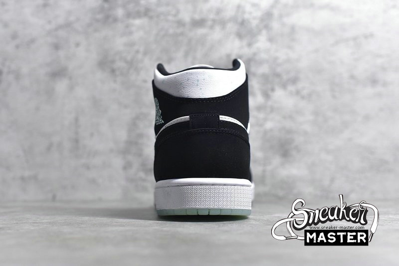 NIKE AIR JORDAN 1 MID SE GS GLOW IN THE DARK PANDA WHITE/BLACK-TEAL TINT BQ6931-103