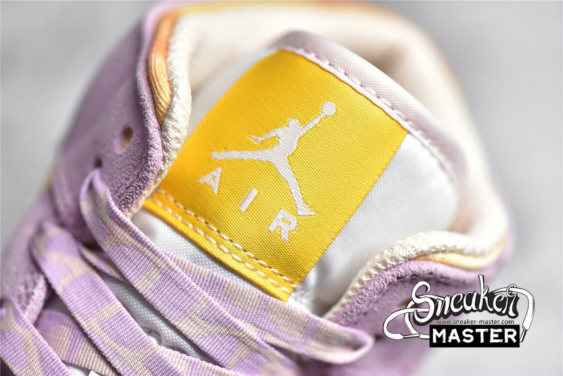 - This mid-top Air Jordan 1 features a White leather base with Arctic Pink suede overlays. A two-tone acid wash textile appears on the collars and laces, white having Gold Swooshes, tongue tags, and insoles. A White midsole atop a Pink rubber outsole completes the design.