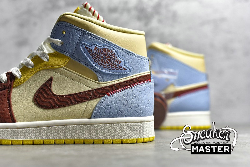 NIKE AIR JORDAN 1 MID SE MAISON CHATEAU ROGUE FEARLESS WHITE/BROWN/BLUE-YELLOW CU2803-200