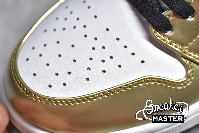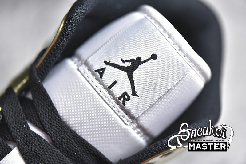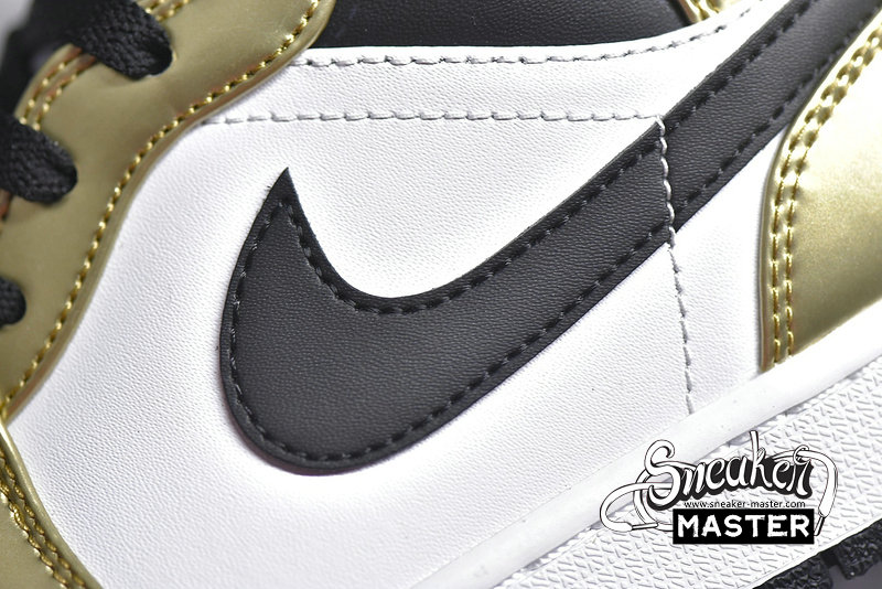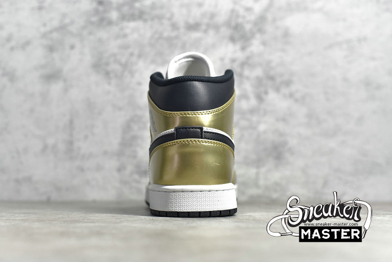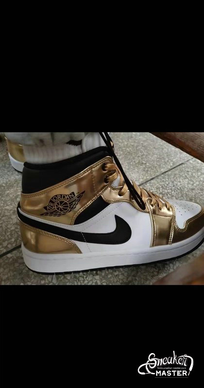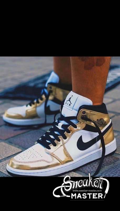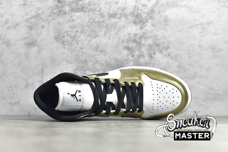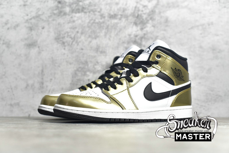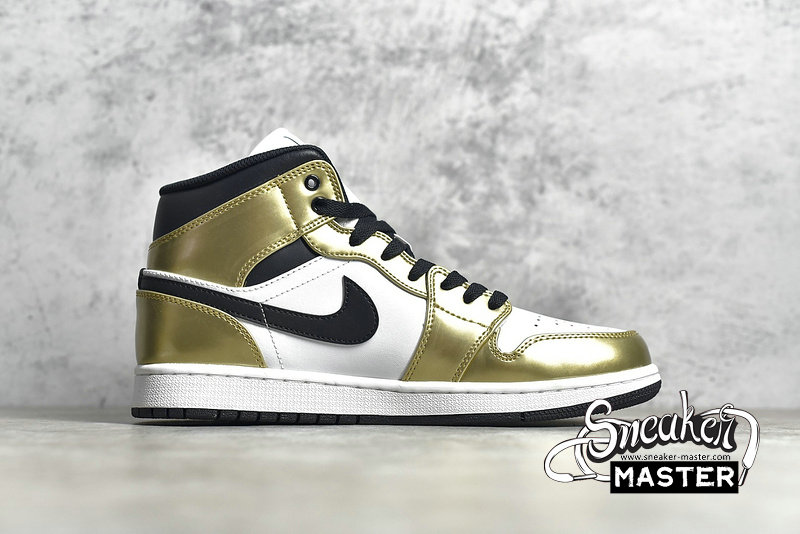 - The Air Jordan 1 Mid SE 'Metallic Gold' is an elevated take on the basketball classic. The shoe's upper is built with leather, finished in white and black and highlighted by metallic gold overlays. Perforations on the toe box provide breathability, while underfoot, the midsole houses Air in the heel for cushioning. A black concentric rubber outsole is included for traction.
