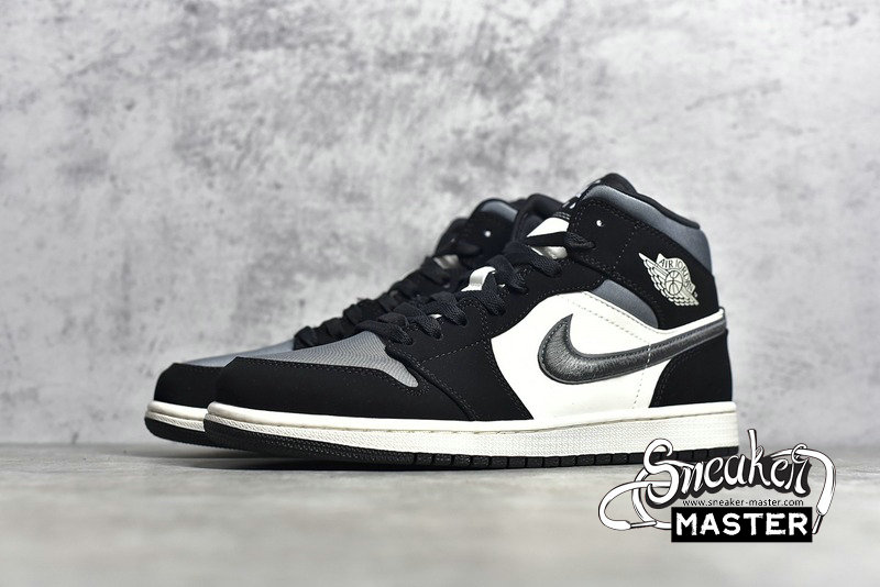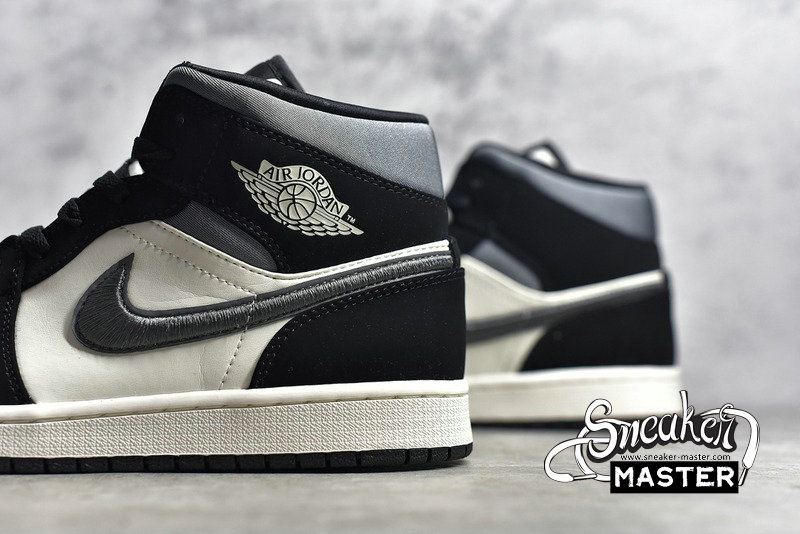 - The Air Jordan 1 Mid SE 'Satin Smoke Grey' brings a neutral look to its classic basketball construction. Built with a white leather base, the upper is highlighted by shiny satin on the toe box, collar and Swoosh, with black suede on the overlays. The classic midsole houses Air in the heel for cushioning.