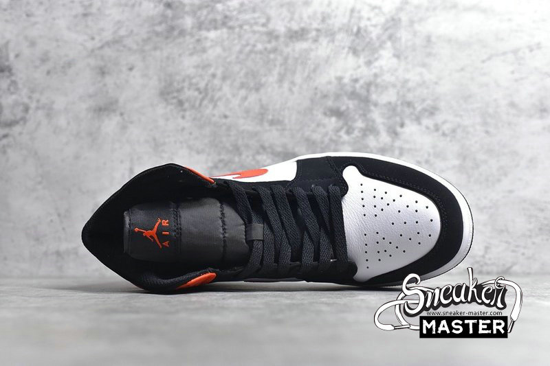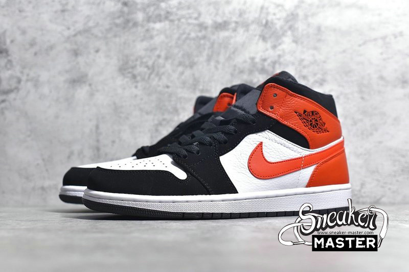- This mid-top Air Jordan 1 comes dressed in a Black, Starfish and White color combination. Constructed with Black nubuck on the overlays, White leather covers the panels and toe box. Starfish, a shade of Orange lands on the leather overlays around the heel and Swoosh. Other details includes a White midsole and Black rubber outsole.