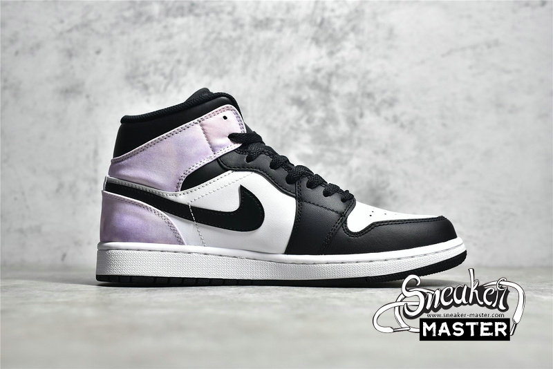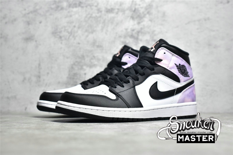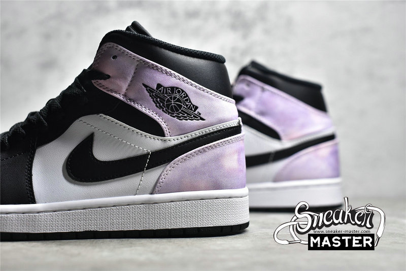 - NIKE AIR JORDAN 1 MID TIE DYE BLACK/WHITE-AMETHYST WAVE-BLEACHED CORAL DM1200-001