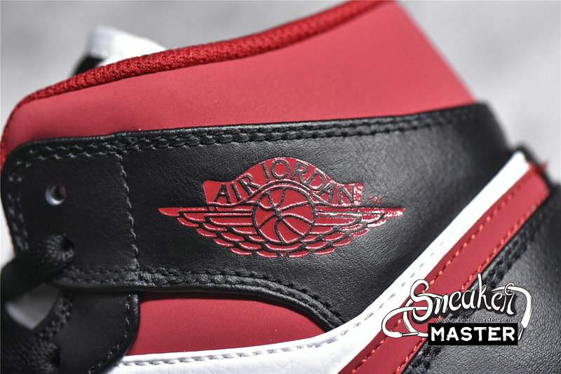 - Appearing in a classic Jordan Brand colorway, the Air Jordan 1 Mid 'Black Gym Red' released in May 2021. Built with leather, the shoe's upper sports a white base, contrasted by black on the overlays and highlighted by Gym Red on the padded collar, 'Wings' logo and Swoosh branding. A breathable nylon tongue and perforated toe box support the fit, while underfoot, a standard rubber cupsole with Air in the heel anchors the build.