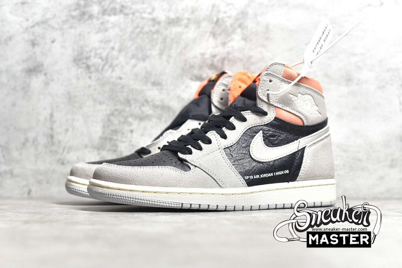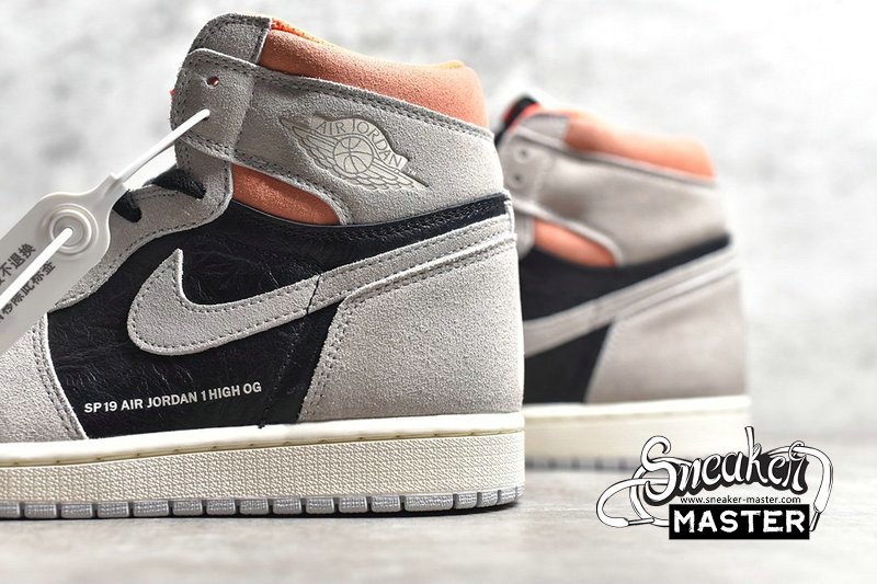 - Ditching the conventional all-leather design of the silhouette, a mixed-material construction features the Air Jordan 1 Retro High OG 'Neutral Grey.' Soft gray suede overlays contrast a folded black leather foundation with Hyper Crimson's contrasting pop on the suede collar. ' SP 19 Air Jordan 1 High OG ' on the quarter panel is stamped in black print.