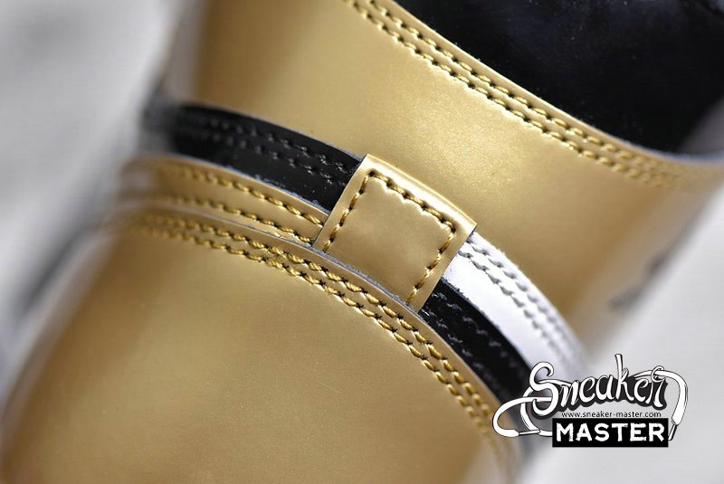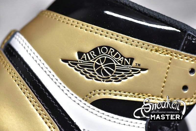 - As promised in its name, the Air Jordan 1 Retro High OG NRG 'Gold Toe' boasts metallic gold detailing on the perforated toe box, as well as on its tongue and heel panel. Dressed in black are the sneaker’s patent leather upper, suede Swoosh and lacing structure, and outsole. The shoe also features an extended side panel and rubber midsole in white.