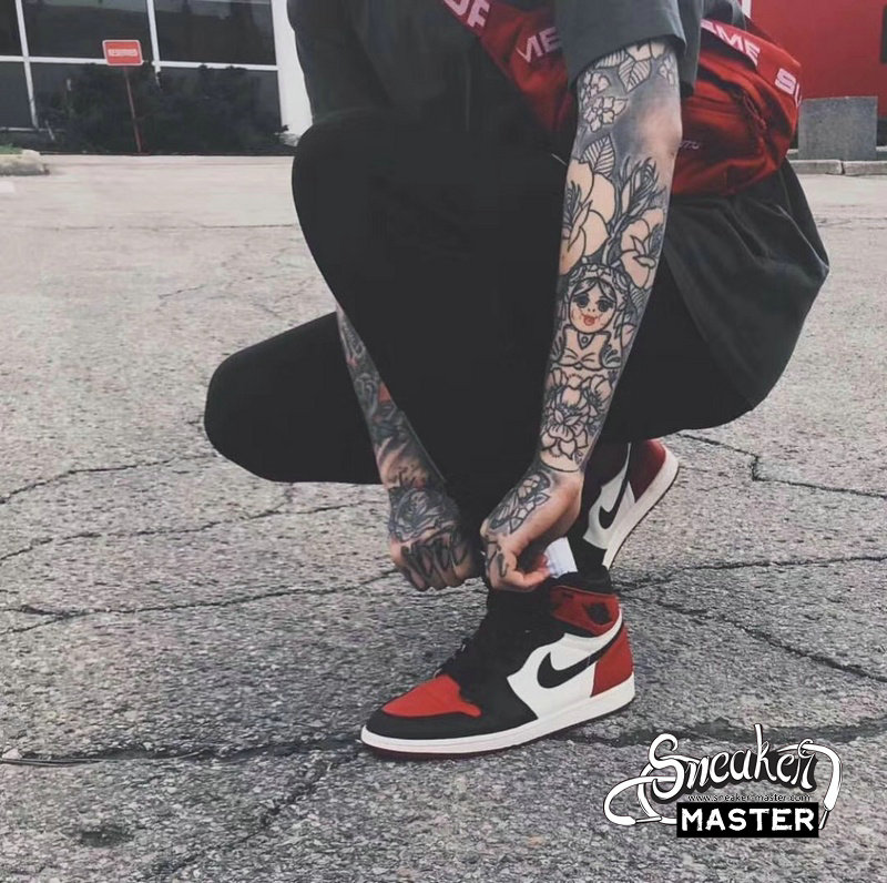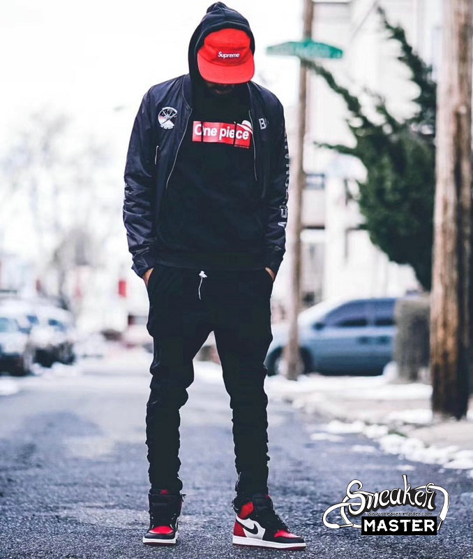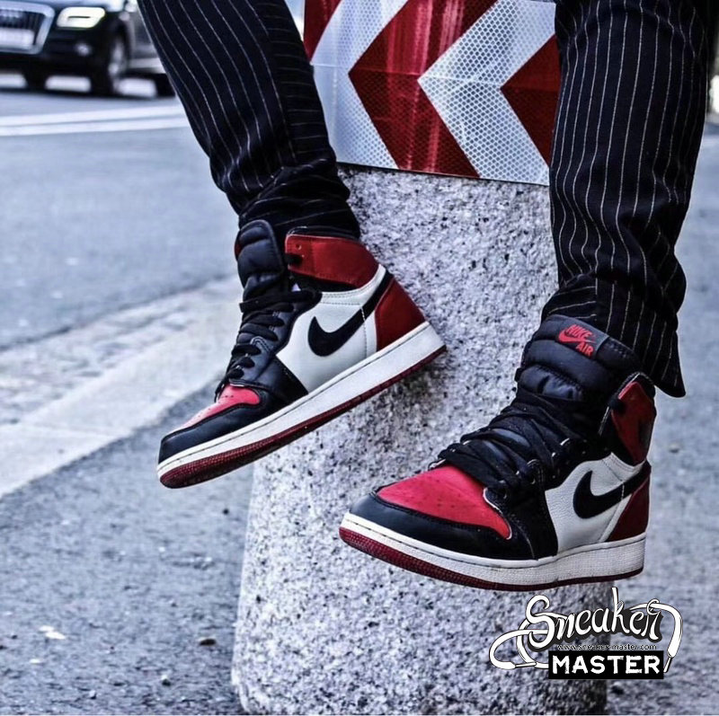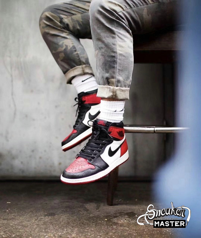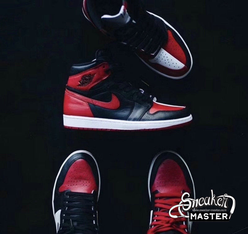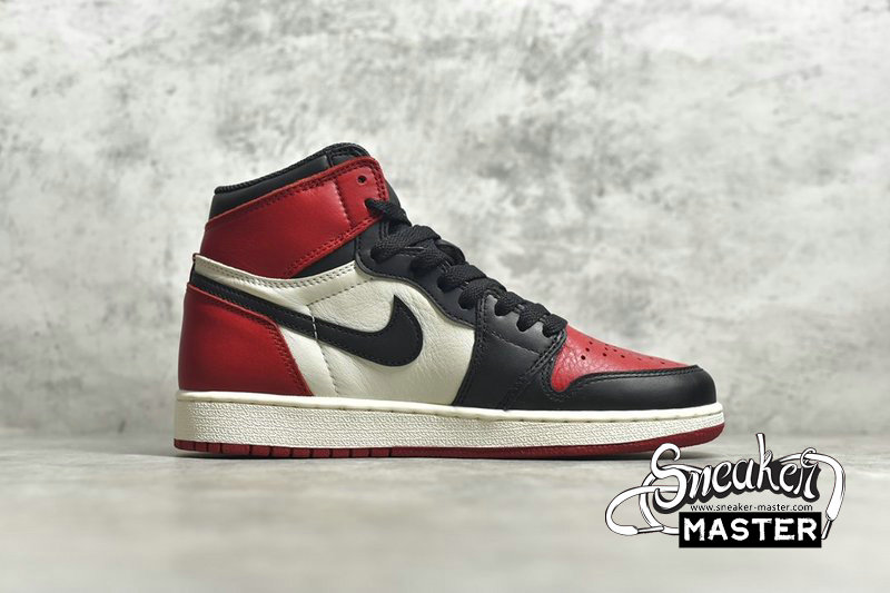 - Released in February 2018 alongside the men’s edition, this grade school-sized variant of the Air Jordan 1 Retro High OG ‘Bred Toe’ blends style details from both the ‘Bred’ and ‘Black Toe’ versions of the Air Jordan 1. Decked in premium leather, the classic Chicago Bulls colors are seen on the black Swoosh, white quarter panel, and red toe box, heel, collar and outsole. Traditional ‘85 elements can be seen via the Nike Air branding on the tongue tag and sockliner.