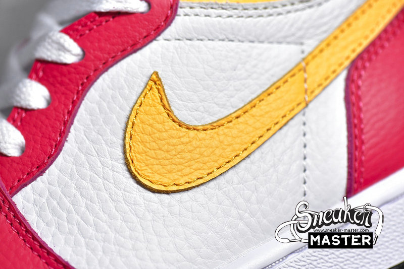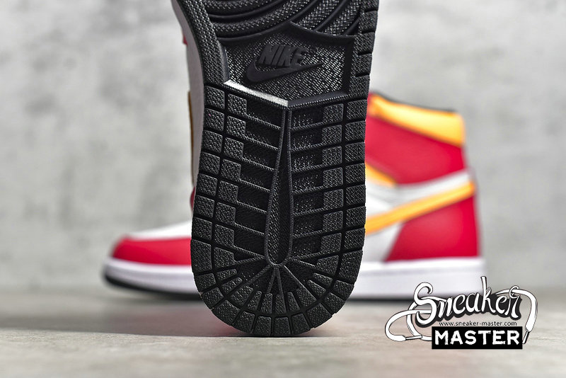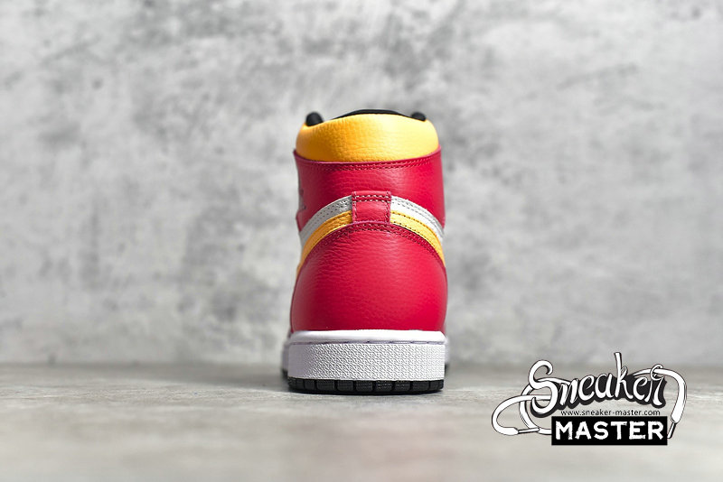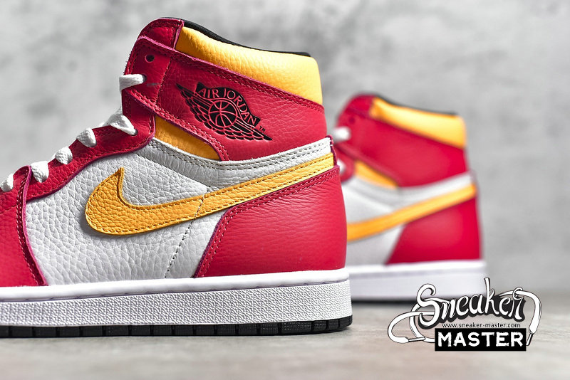 - The Air Jordan 1 Retro High OG 'Light Fusion Red' brings a vibrant look to its classic basketball construction. Built with leather, shoe's upper features a white base, overlaid by Light Fusion Red and sporting Laser Orange on the Swoosh branding. The tongue tag features a gradient mix of the latter two hues, while underfoot, the white midsole houses Air in the heel for cushioning, giving way to a concentric rubber outsole for traction.