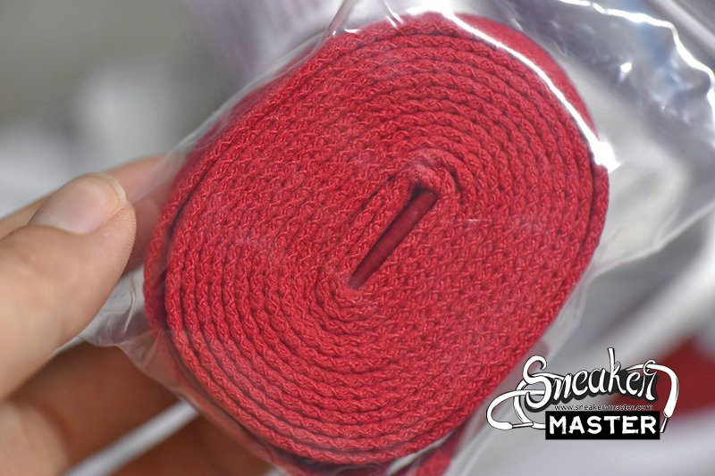 - The white-based sneakers feature red accents throughout, with a metallic patent leather being used on the ankle collar and Swoosh. An extra set of red laces will also be included.