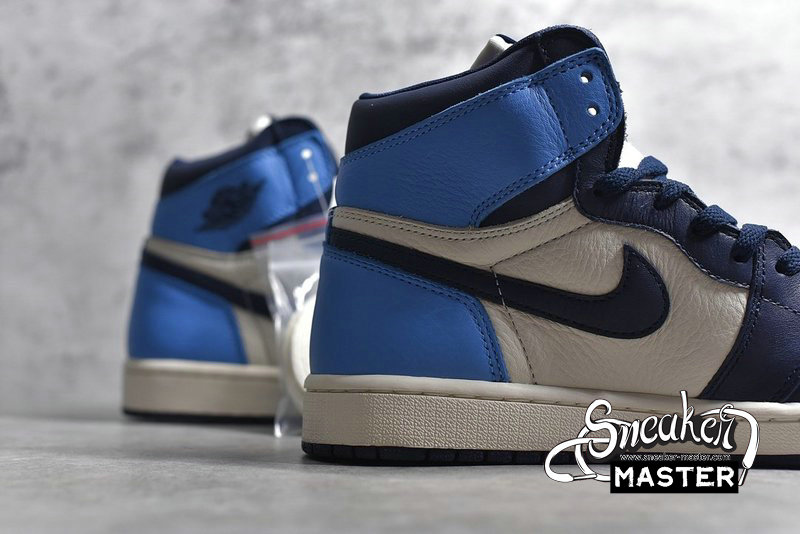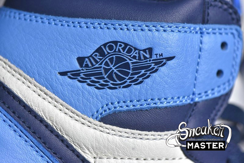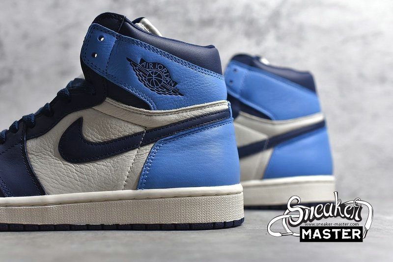 - The Air Jordan 1 Retro High OG 'Obsidian' arrives with classic color blocking on a traditional all-leather build. A crisp white base with complementary overlays in University Blue and Midnight Navy combine as an homage to Michael Jordan’s UNC alma mater. Details include perforated detailing on the toe box, a Nike woven tag atop the padded nylon tongue, and the Jordan ‘Wings’ logo on the collar flap.