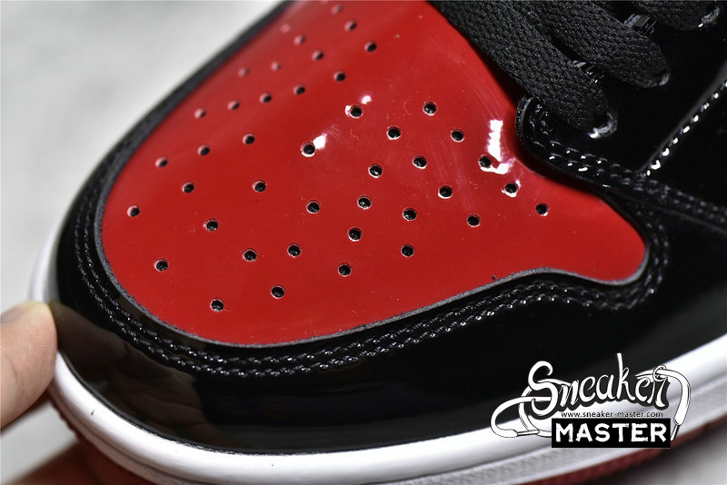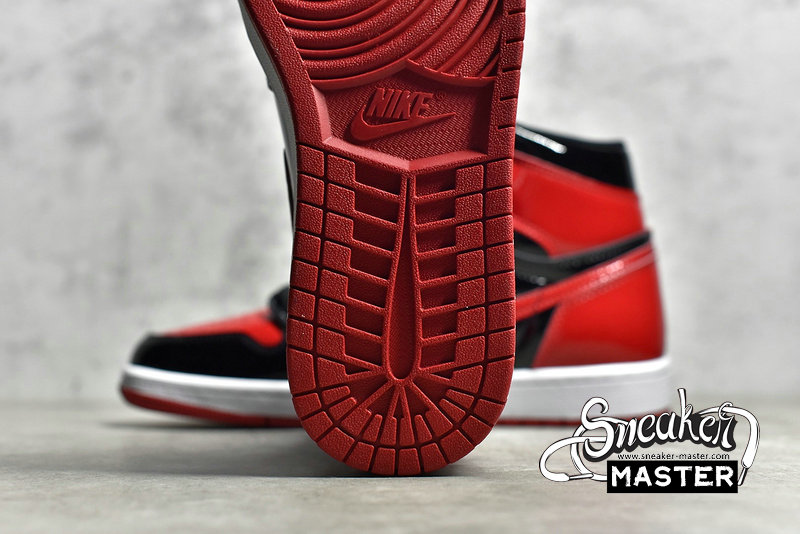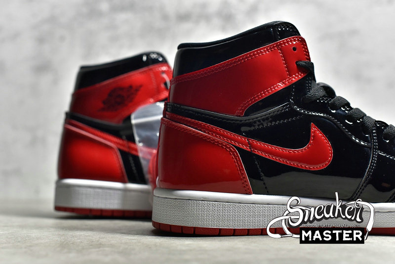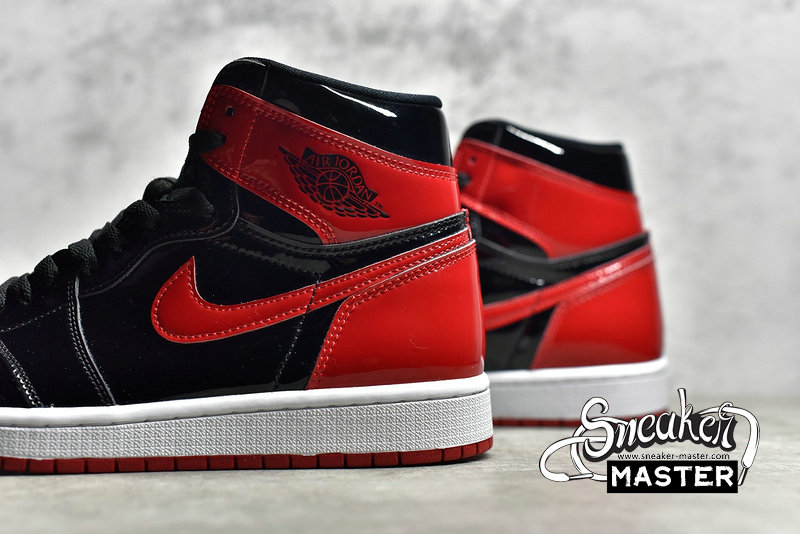 - Featuring a classic mix of hues, the Air Jordan 1 Retro High OG 'Patent Bred' also sports an elevated construction. Built entirely with patent leather, the shoe's upper appears in a familiar mix of black and Varsity Red, with perforations on the toe box offering breathability. Underfoot, a white Air midsole provides cushioning and contrast, giving way to a Varsity Red finish on the concentric rubber outsole, which is included for traction.