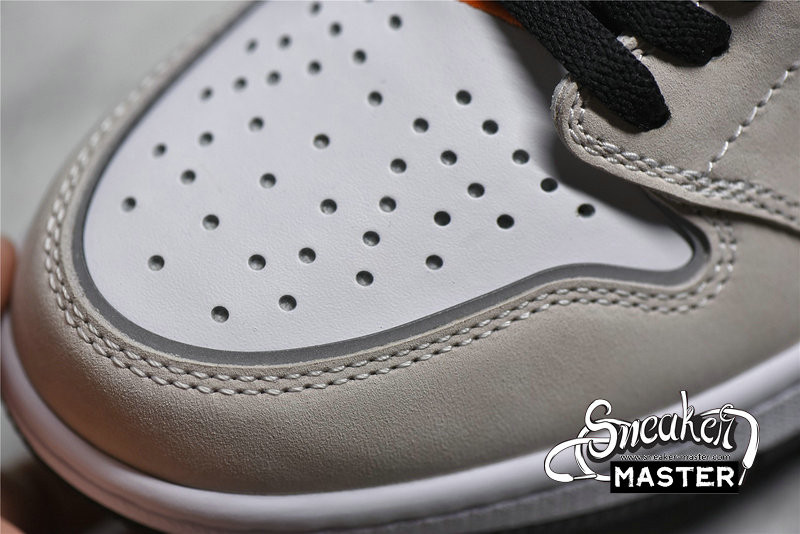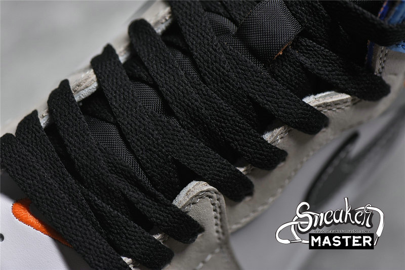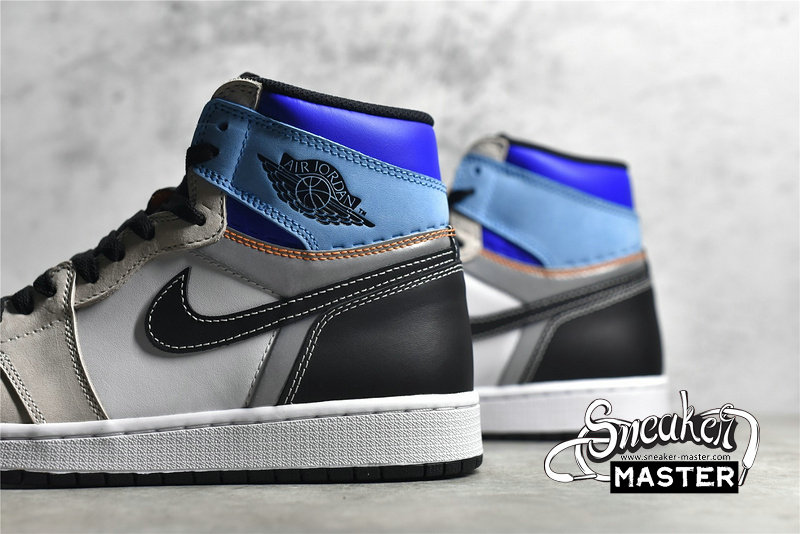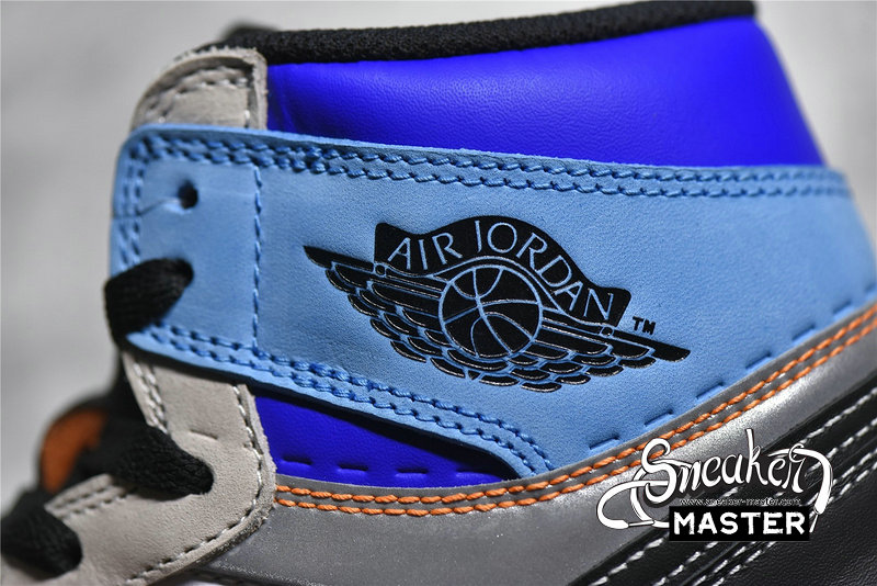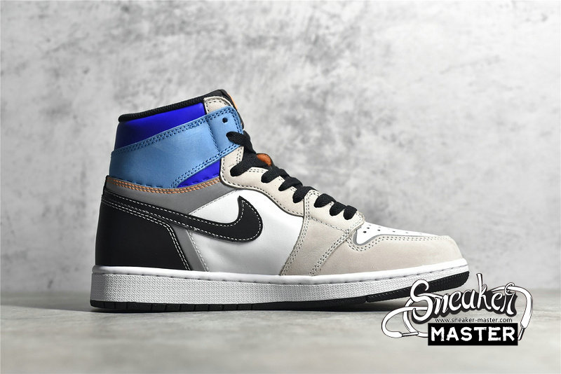 - The Air Jordan 1 Retro High OG 'Prototype' brings a contrasting look to its classic basketball construction. Built with leather, the shoe's upper appears in white, overlaid by grey and black leather and tan nubuck. The collar highlights the design in various shades of blue, with perforated detailing that can be cut away to turn the build into a low-top. Underfoot, the midsole houses Air in the heel for cushioning, with a concentric rubber outsole for traction.