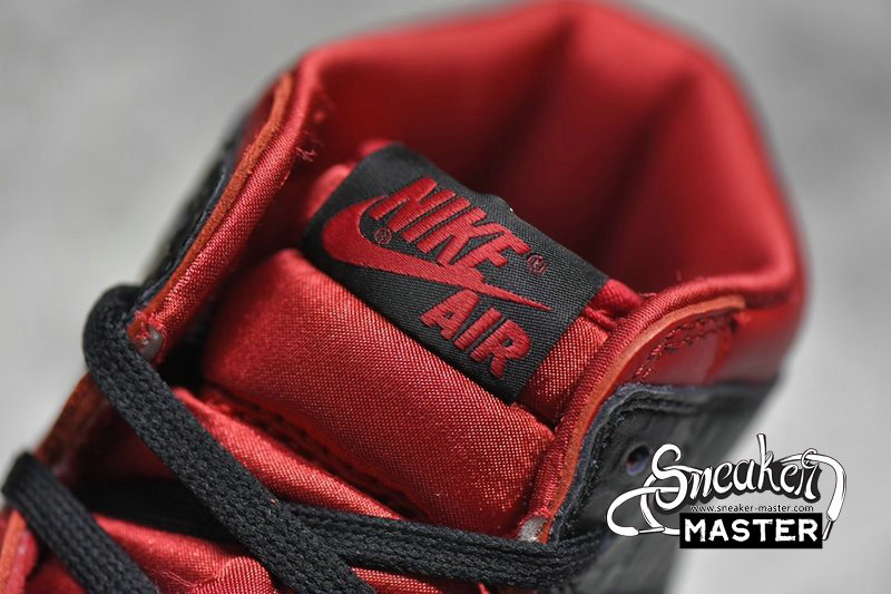 - A follow-up to the 2019 'Satin Black Toe,' the Wmns Air Jordan 1 Retro High OG 'Satin Red' released in August 2020. The shoe emerges with flipped color-blocking, although it's finished in the same mix of red, black and white. A snakeskin texture marks the heel, collar and Swoosh branding, while the tongue and inner lining are made with satin to give the shoe its name. A white Air midsole provides cushioning underfoot.