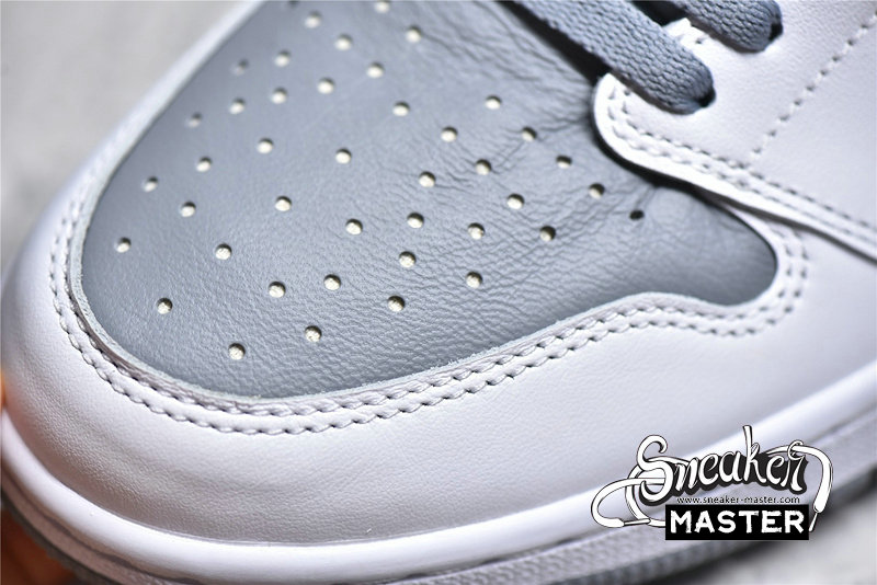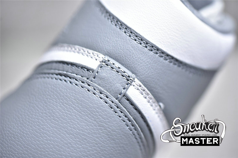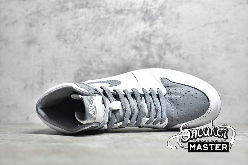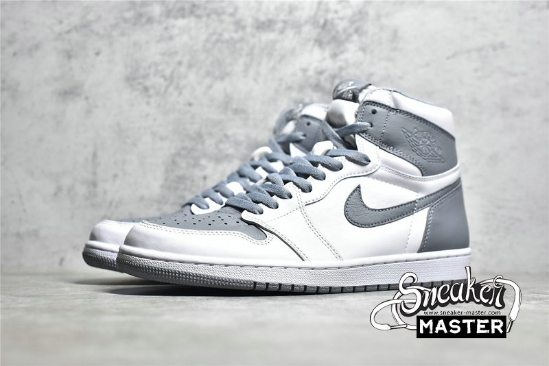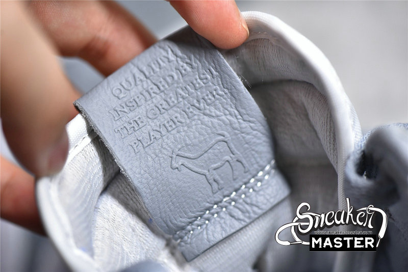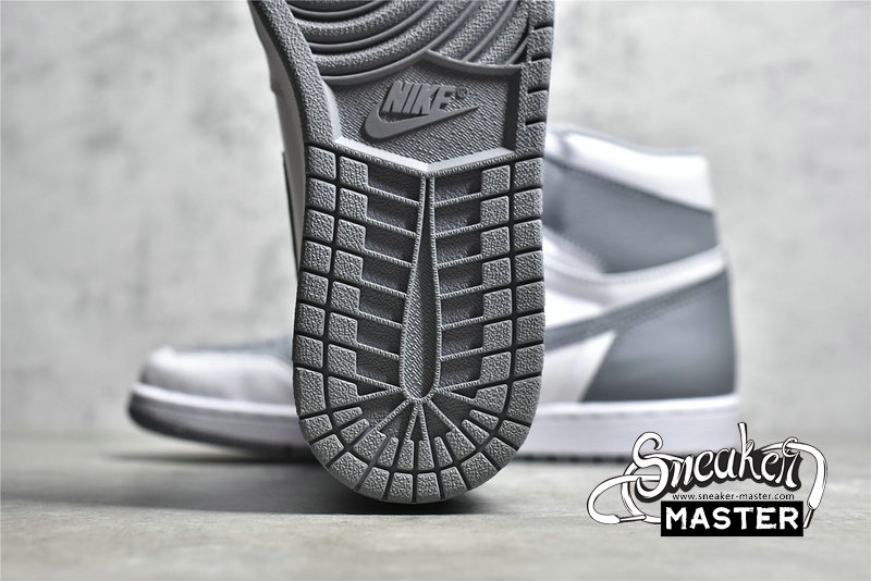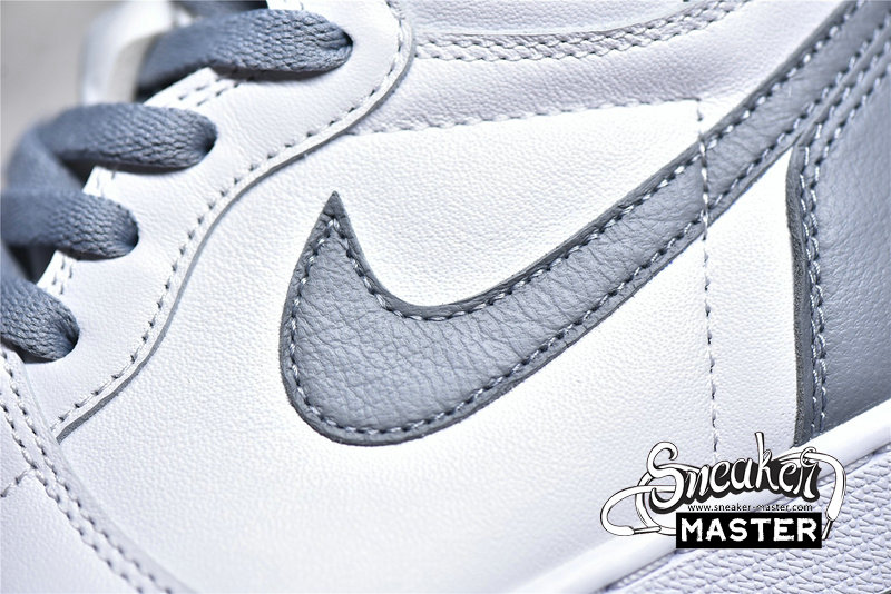 - This offering of the Air Jordan 1 features a White goat leather base with Stealth Grey overlays, Swooshes, laces, leather tongue labels, lining, and outsole. “Quality Inspired By the Greatest Player Ever” on the inner tongues atop a Grey rubber outsole completes the simple design.