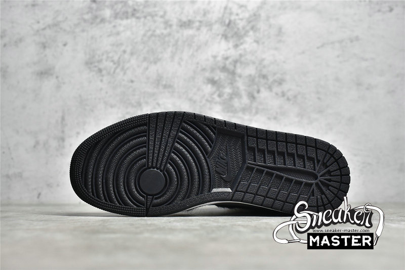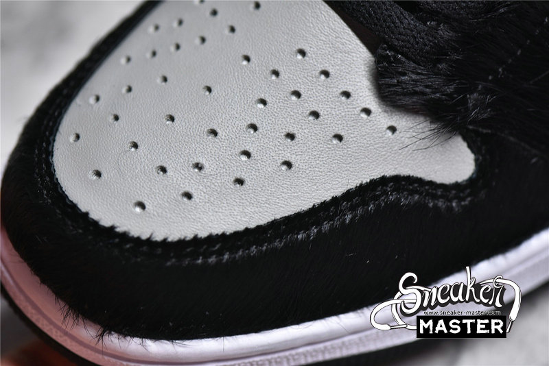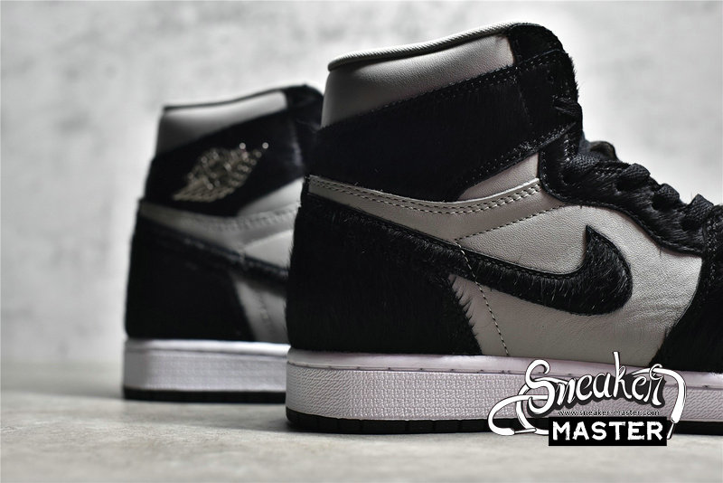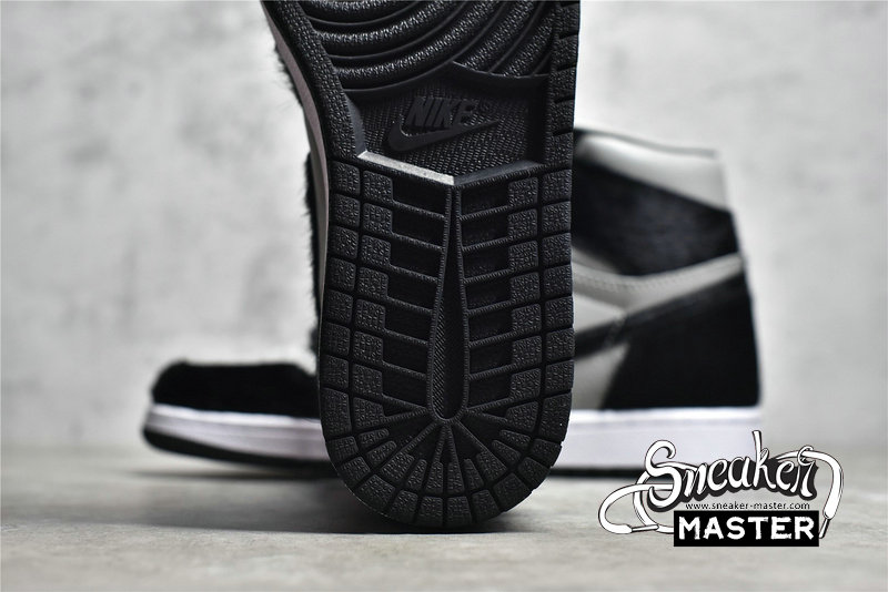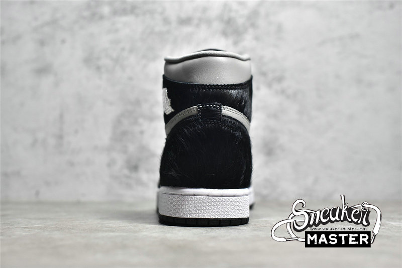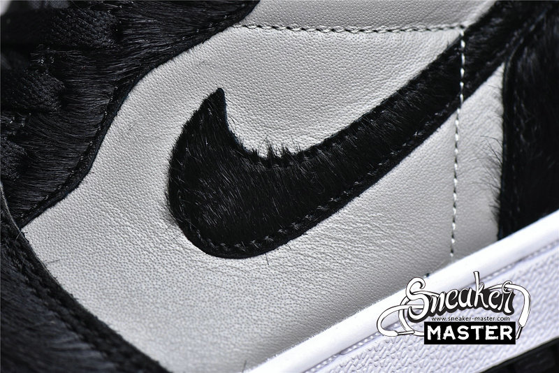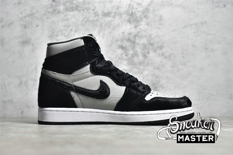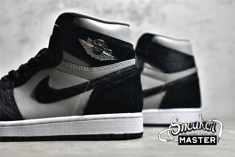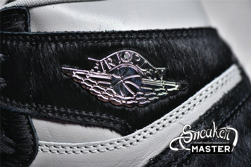 - This offering of the Air Jordan 1 features a Light Grey leather upper with Black pony hair overlays and Swooshes. A metal Wings logos on the lateral ankle atop a White midsole and Black rubber outsole completes the design.