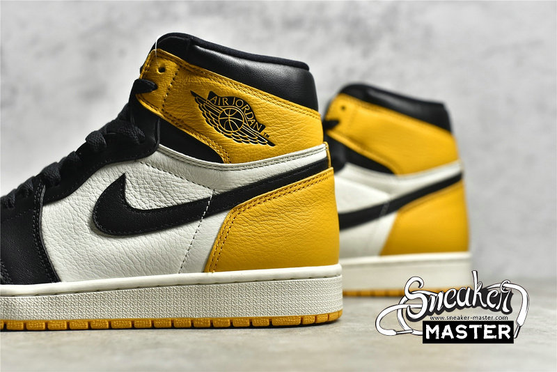 - This 'Yellow Toe' colorway of the Air Jordan 1 Retro High OG brings back a distinct blocking first seen in the 'Bred Toe' from 2018. The all leather build combines a white base with a yellow toe box and heel/ankle area. Black leather overlays the toe and lace area, as well as appearing on the Wings logo and Swoosh. The classic AJ1 midsole/outsole combination returns, with a crisp white sidewall and yellow rubber outsole.