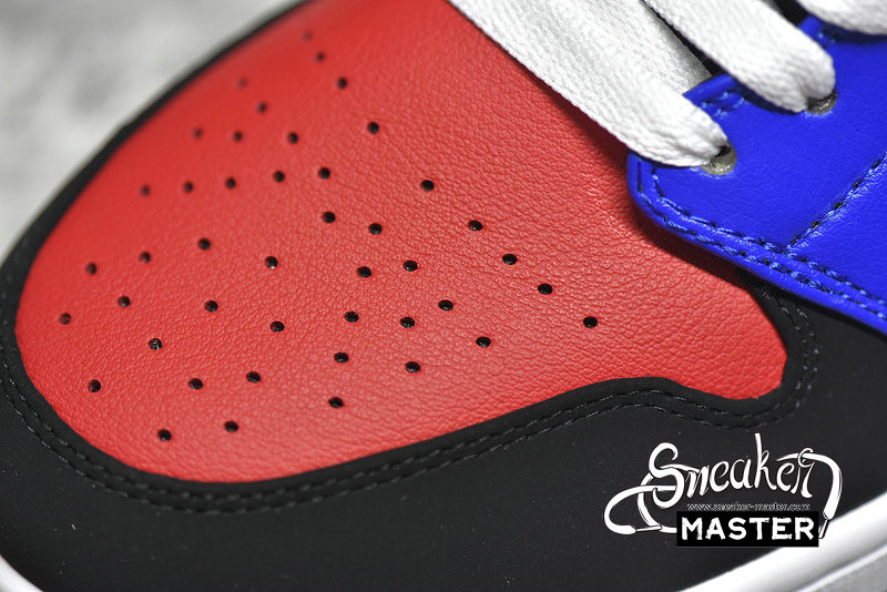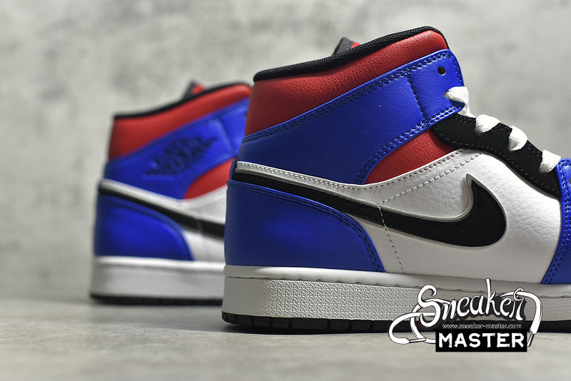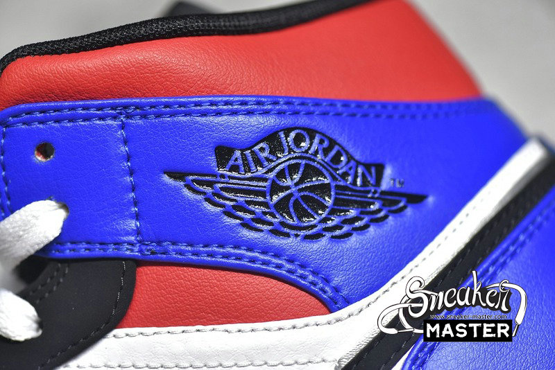 - Having a similar color tone as the Air Jordan 1 “Top 3” from 2016. This Air Jordan 1 Mid features Blue on its overlays, a Bred-like toe box, Black Swoosh logos, Red tongue label with a Blue Jumpman logo. Finishing off the design are White laces, matching White midsole and Black rubber outsole.