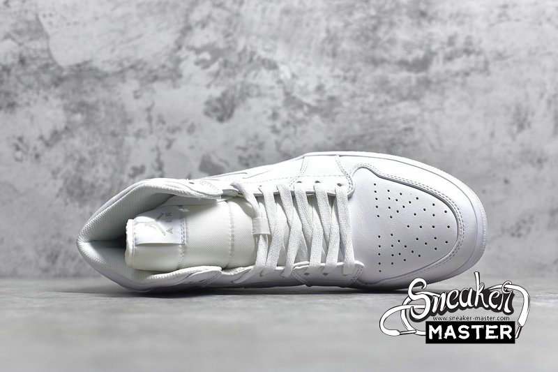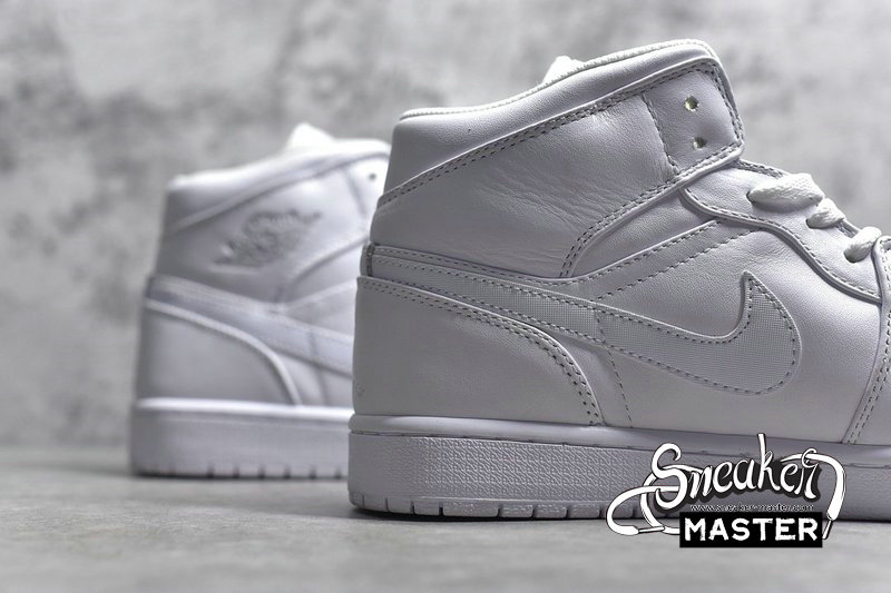 - The Air Jordan 1 Retro Mid 'Triple White' gets rid of all color, emerging with an all-white look that sports a subtle Swoosh and an embroidered Jumpman on the heel. The white tooling adds a clean finish as well as Air cushioning, while only a silver ‘Wings’ logo adds a touch of color to the look.