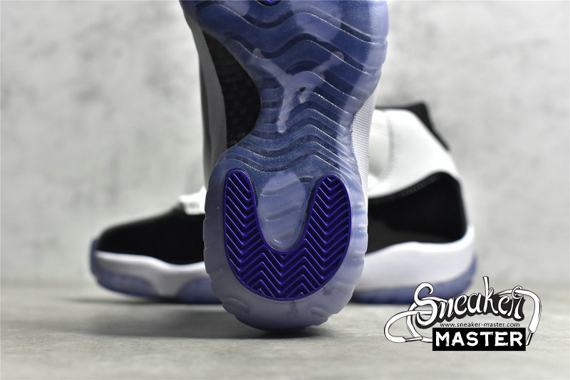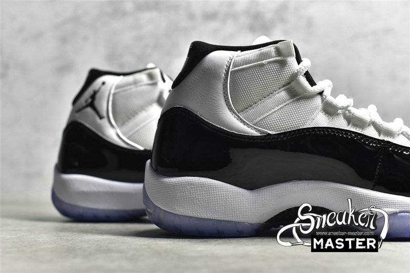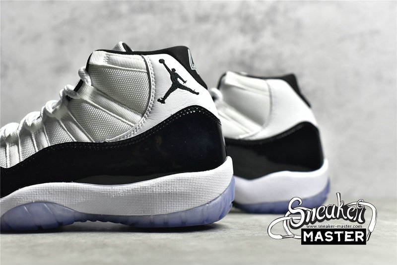 - The 2018 version of the Air Jordan 11 Retro ‘Concord’ shows off ‘45’ imprinted on the black heel tab in honor of the jersey number that Michael Jordan wore when he returned to the NBA after his first retirement. The shoe’s other signature details remain intact, including a white ballistic mesh upper, black patent leather overlays, and an icy translucent outsole.