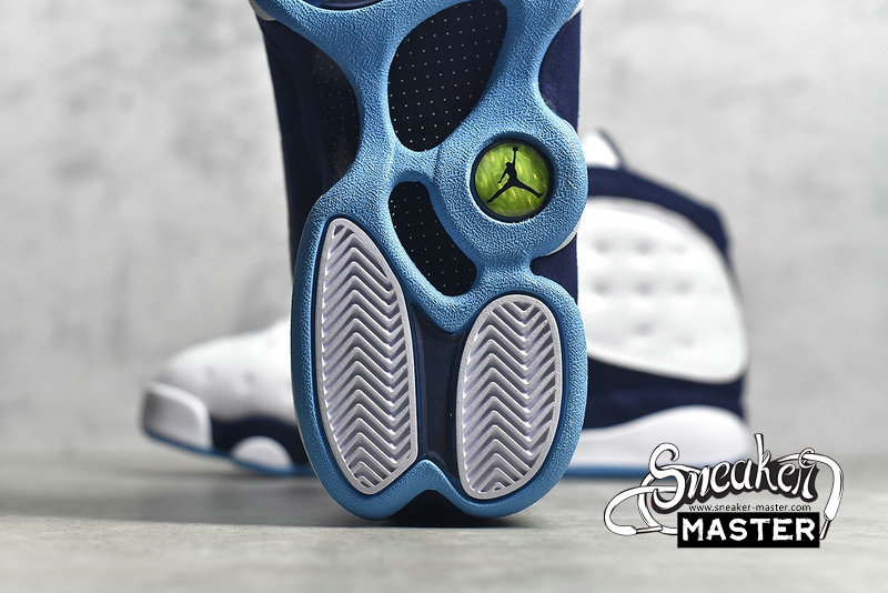 - Dressed in a White, Obsidian, and Dark Powder Blue color scheme. This Charlotte Hornets-themed Air Jordan 13 features a White leather upper with Dark Blue underlays along with Light Blue accents on the tongue’s Jumpman logo and rubber outsole. This release arrives in OG packaging and in full-family sizing.