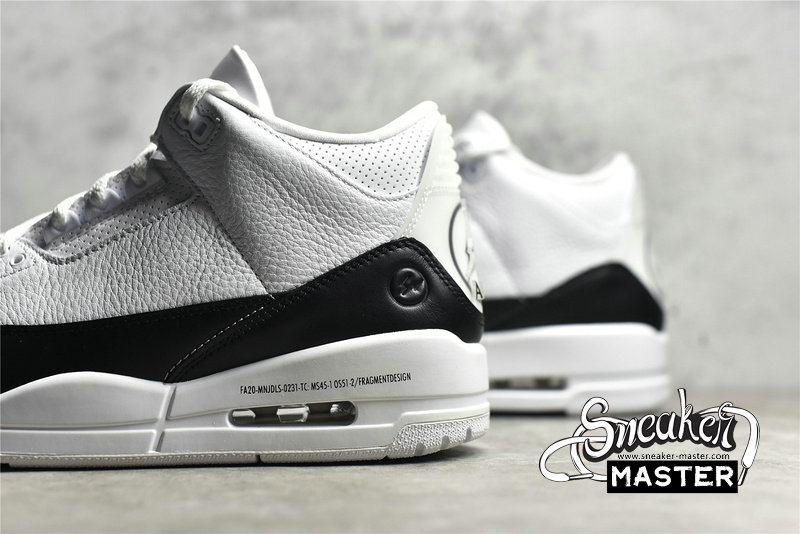 - Jordan Brand teamed up with Hiroshi Fujiwara's design label to create the Fragment Design x Air Jordan 3 Retro SP. Built with tumbled lather, the upper appears primarily in white, overlaid by black leather on the mudguard, toe and heel. fragment design's double lightning bolt logo appears on the heel, while underfoot, Air in the heel of the midsole provides cushioning.